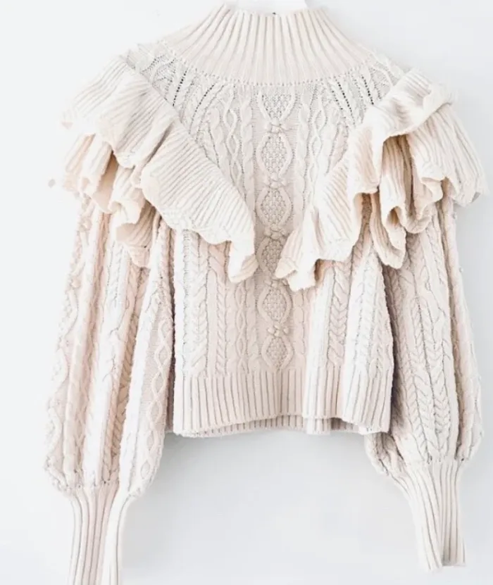 Gros pull maille Torsade tressée Col montant Volant Taille s
