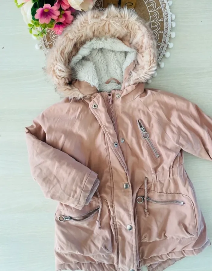 Manteau parka rose poudre Duffle coat à capuche en fausse fourrure Fourre a l’intérieur 24/36 mois