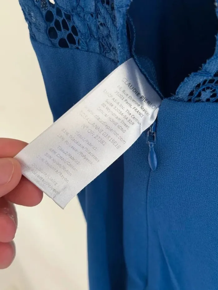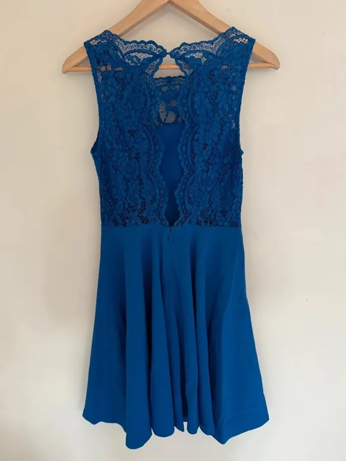 Robe patineuse Claudie Pierlot bleu électrique Haut du buste en dentelle Dos partiellement nu Très bon état taille 36