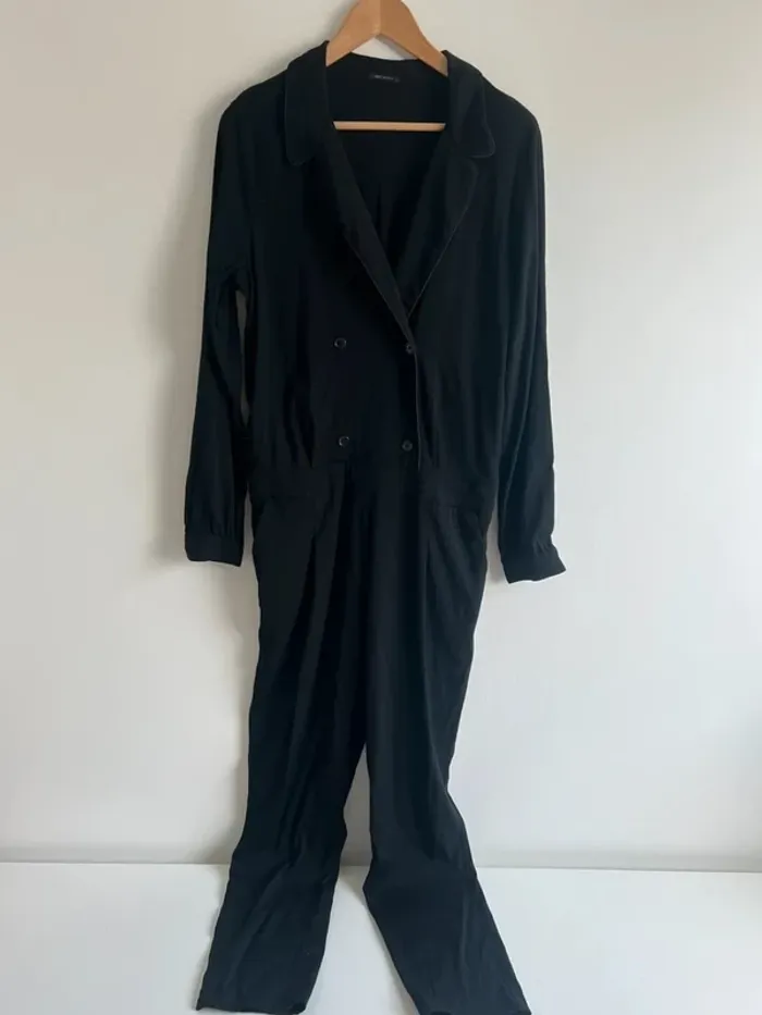 Combinaison pantalon noire IKKS Manches longues Fermeture cache-coeur avec boutons type blazer Taille 42 ok L/XL Très bon état Un bouton intérieur est manquant, aucune gêne