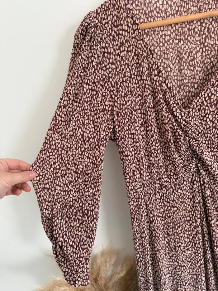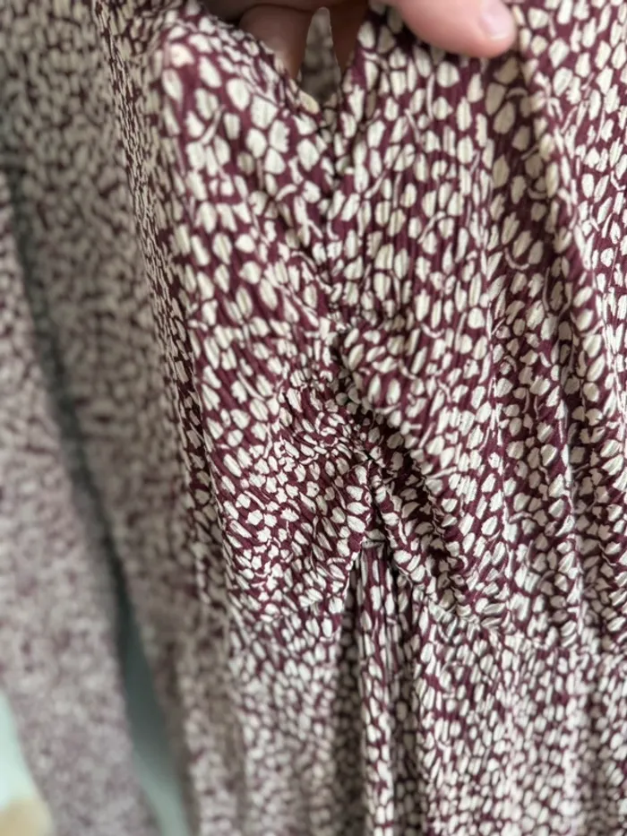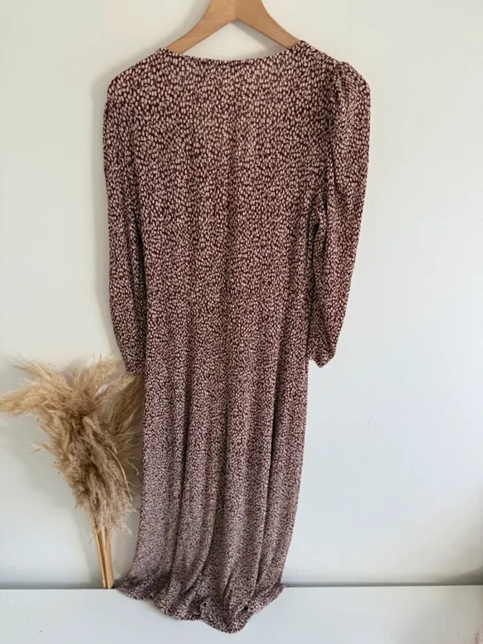 Robe longue Mango bordeaux imprimé crème Manches longues avec détails plissés Taille M Très bon état