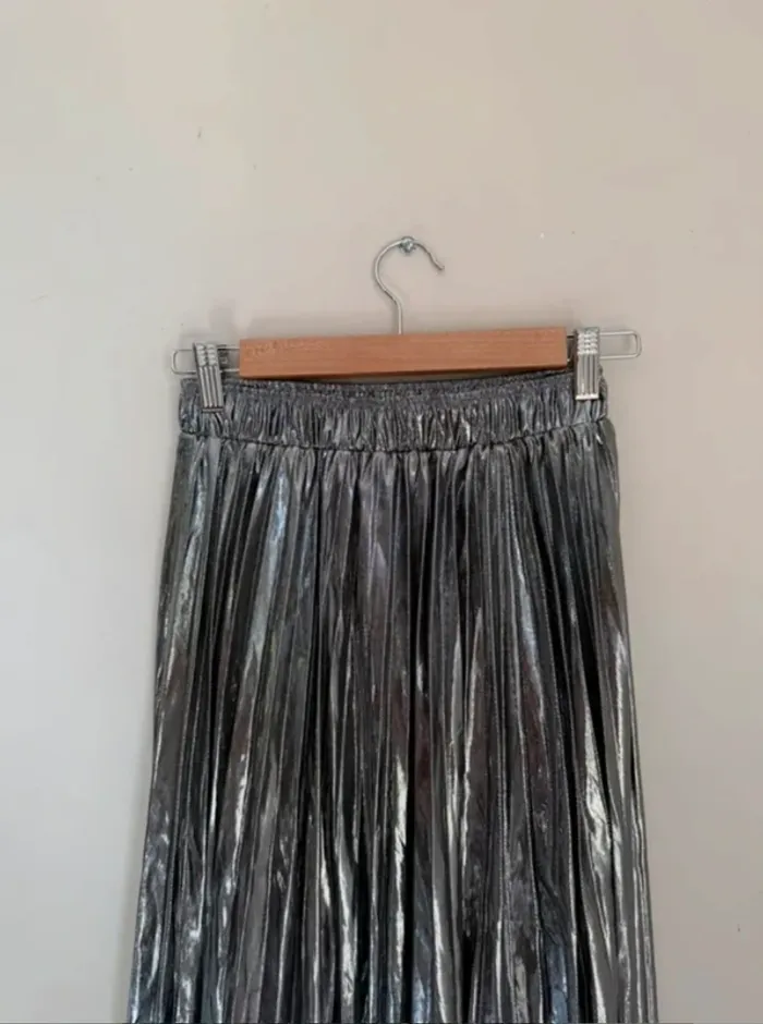 Jupe plissée argentée mi longue - photo numéro 1