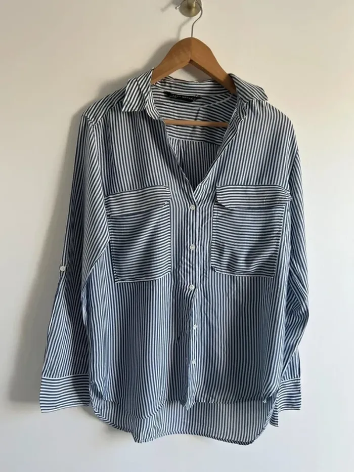 Chemise rayée bleu et blanche Zara Taille S Très bon état (un petit accro sur une manche, très discret)