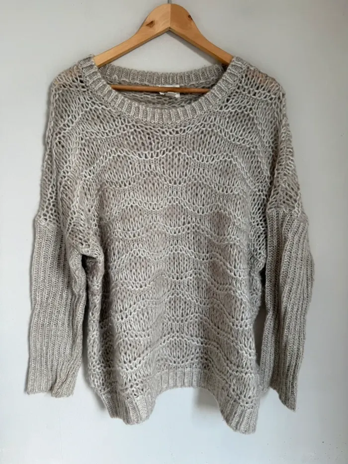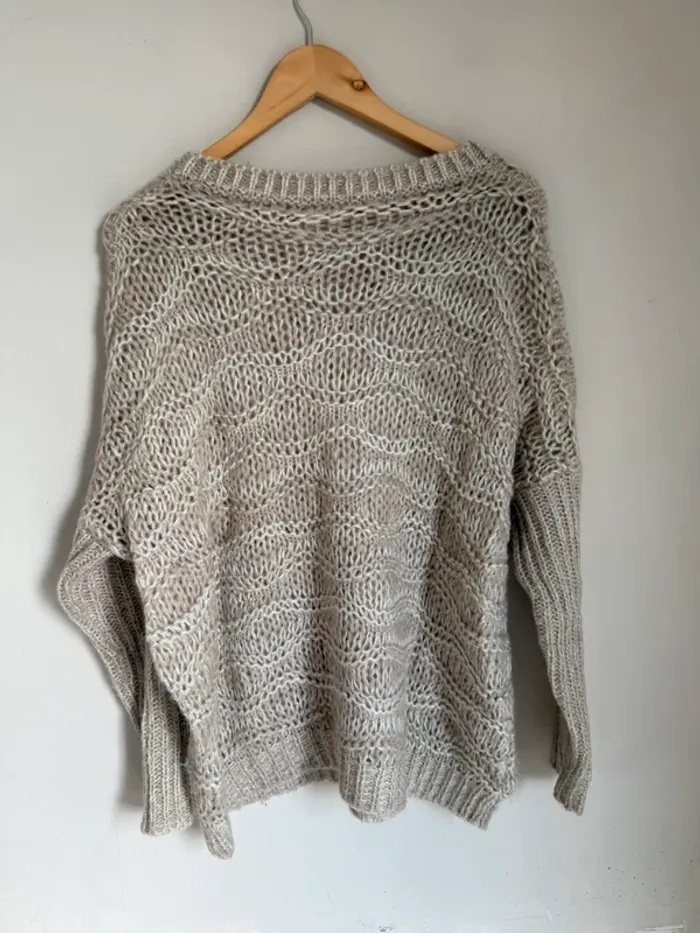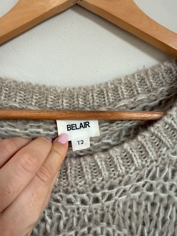 Pull Bel-Air en grosse maille beige Taille 2 oversize 30% Mohair Très bon état