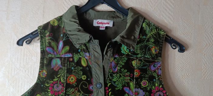 A boutonnage Velours et col en tissu satiné kaki 100% Coton #clo160967_Fille_10ans