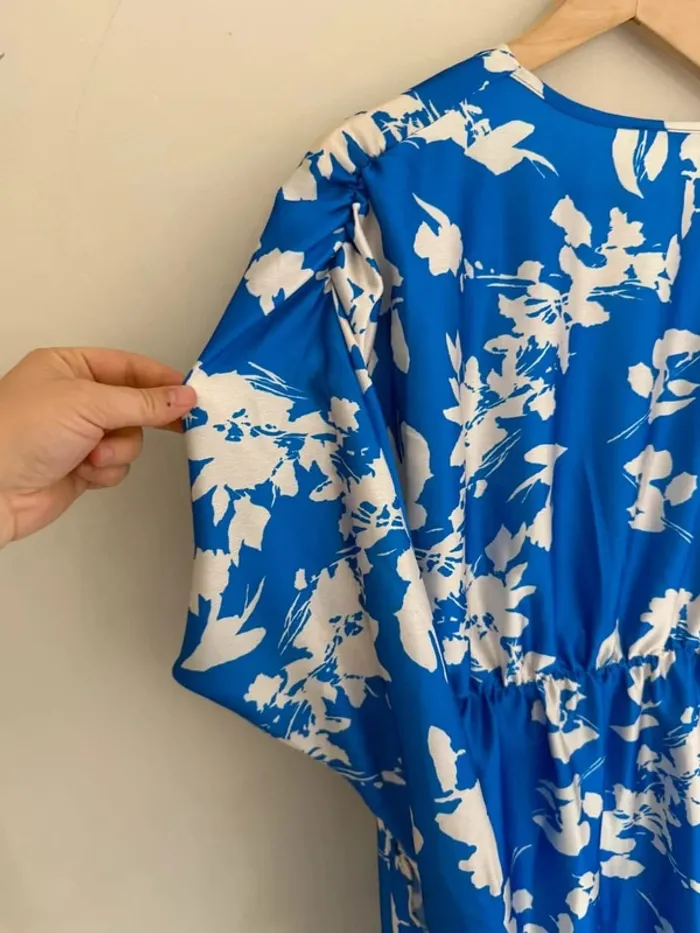 Robe longue bleu roi à fleurs blanches New collection Neuve avec étiquette Taille unique