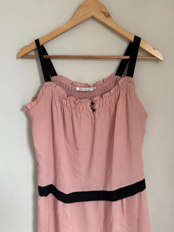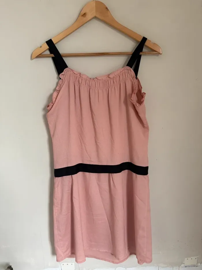 Robe rose poudré bretelles noires taille S/M matière légère style soie