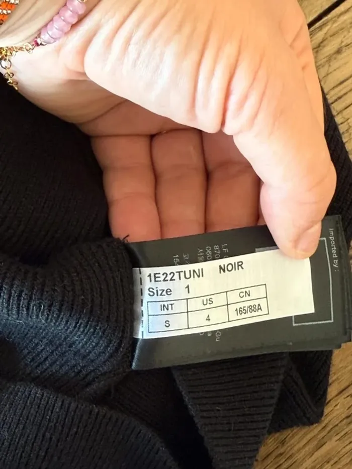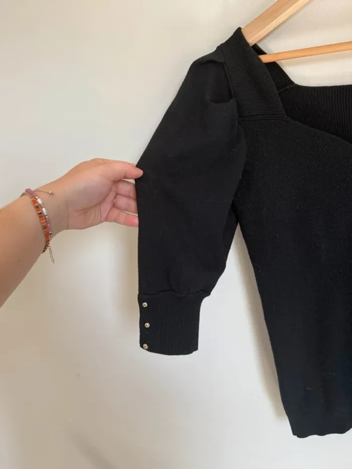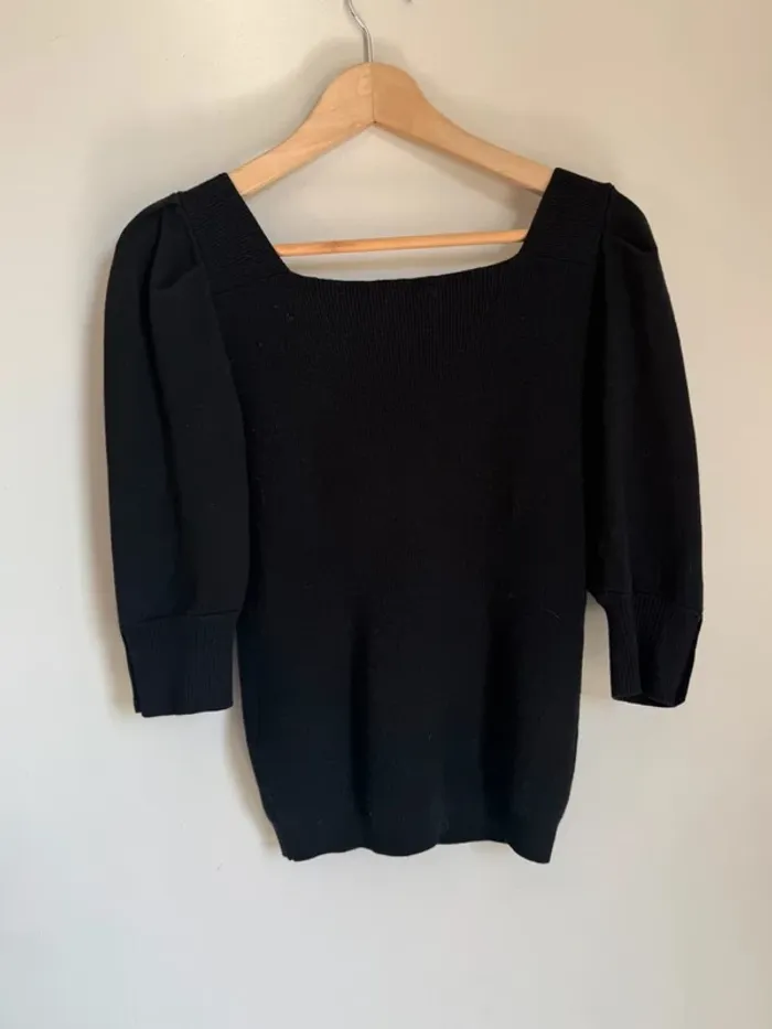 Pull noir Tunis ba&sh Taille 1 Col bénitier dos nu Manches bouffantes 3/4 avec petits boutons Excellent état 50% viscose 24%soie 23% polyamide 3% Yak