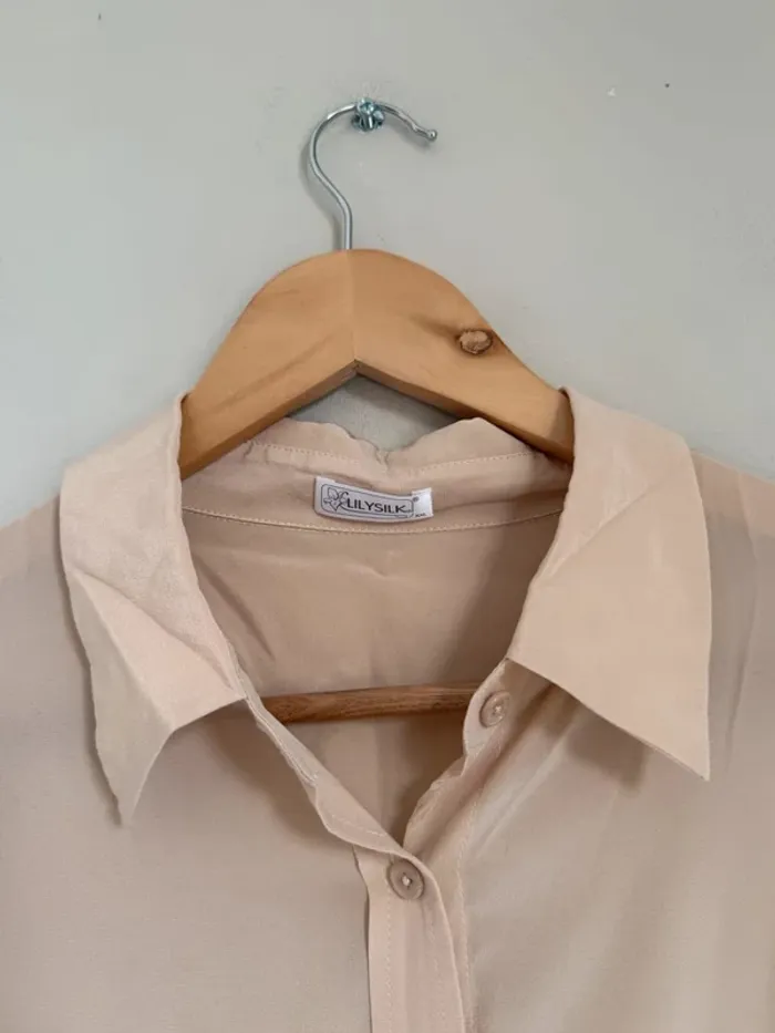 Chemise Lily Silk Modèle phare : chemise en soie classique intemporelle Couleur rose poudré 100% soie naturelle Taille XXL Excellent état ——————————— Cette pièce appartient au dressing de Thérèse. ✨ Je suis #Reusse, revendeuse professionnelle de seconde main. Thérèse m'a confié les vêtements qu'elle ne porte plus pour les vendre à sa place. Intéressé par le service ? Contactez-moi.
