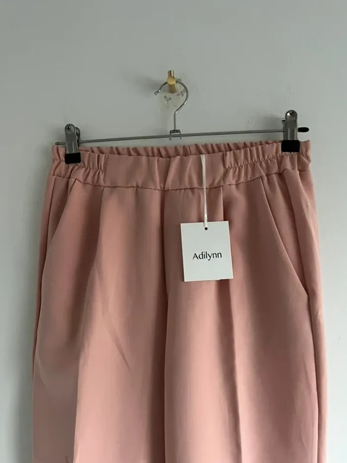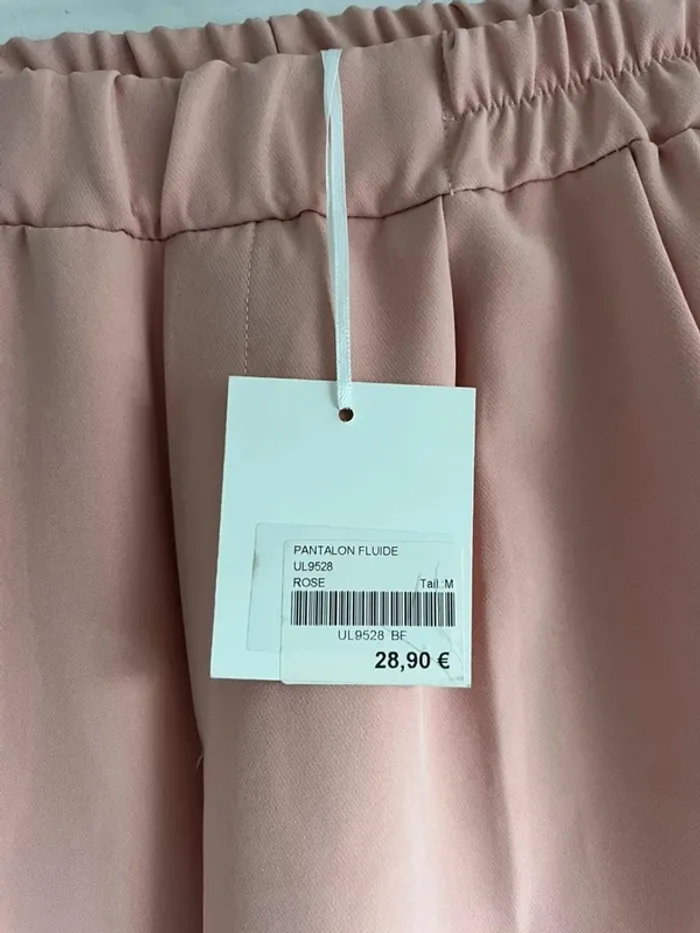 Pantalon ajusté, rose poudré Élastique à la taille Matière fluide Taille M Neuf avec étiquette largeur à la taille : 33 cm élastique Longueur totale : 86 cm