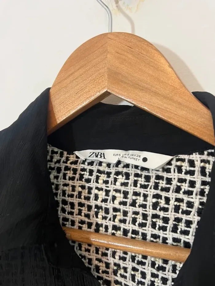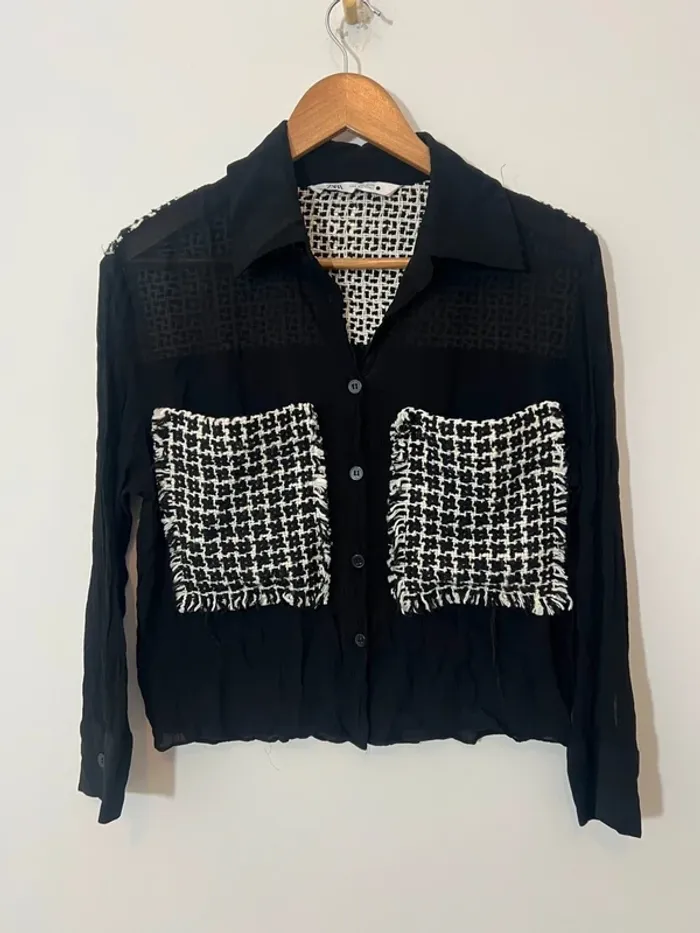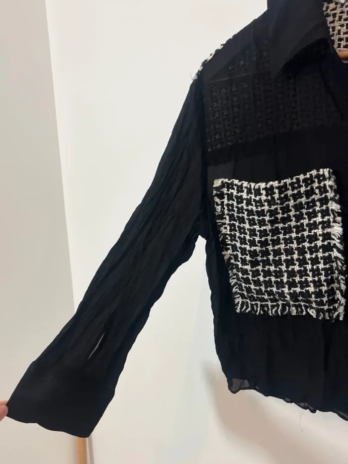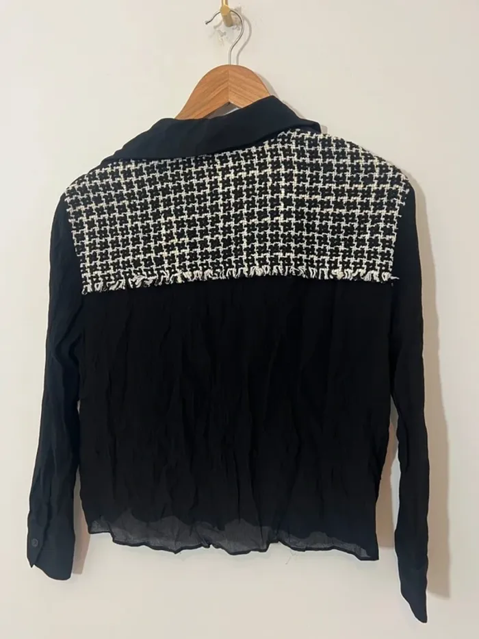 Chemisier Zara noir Poches et haut du dos en tweed gris et blanc Matière fluide et légère, jolie transparence Taille S Très bon état