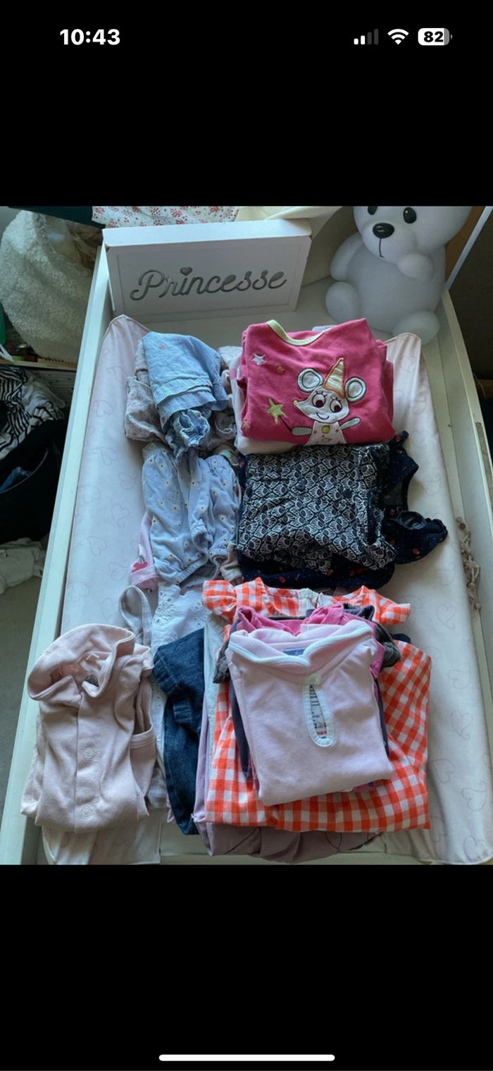 Lot de vêtements composées, de 9 robes, 4 T-shirts, 4 combinaisons dont 3 Combies short, 2 shorts, un body, 4 pyjamas léger, 3 débardeurs. Un peu sous forme de colis, mystère les articles sont en bon état, certains portées d’autres non différentes marques ( Kiabi, Jacadi, petit bateau SHEIN c&a tape à l’œil Orchestra H&M) #colismysterevetements #peitefille #18moisfille #été #automne