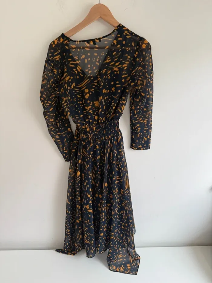 Robe Maje bleu marine jaune mourtarde - photo numéro 3