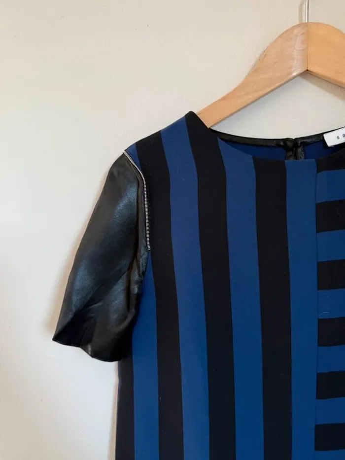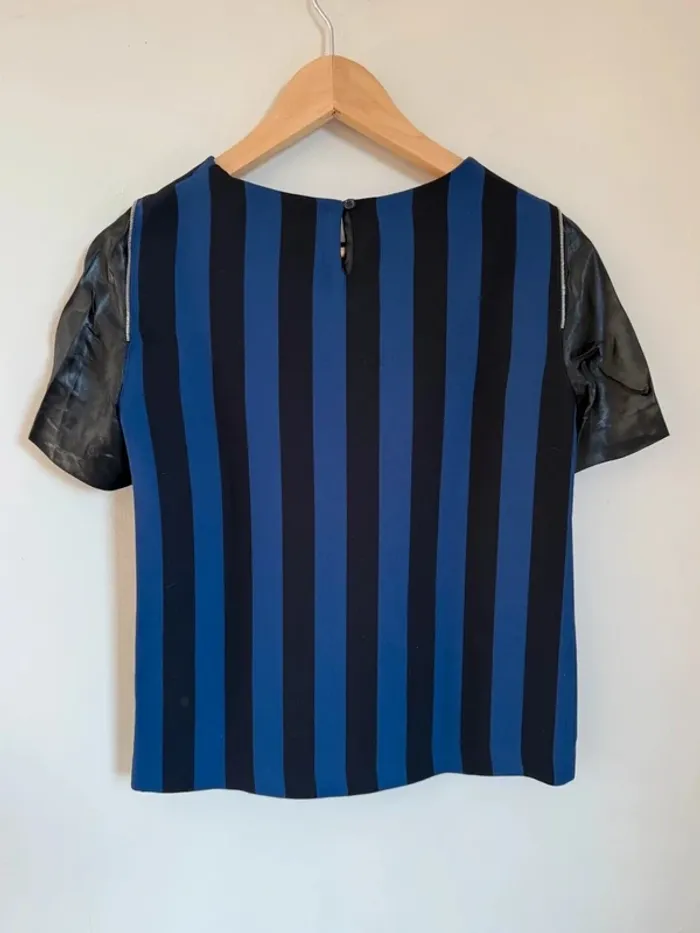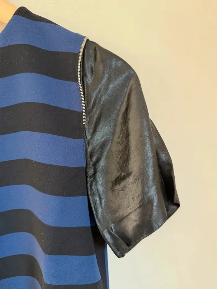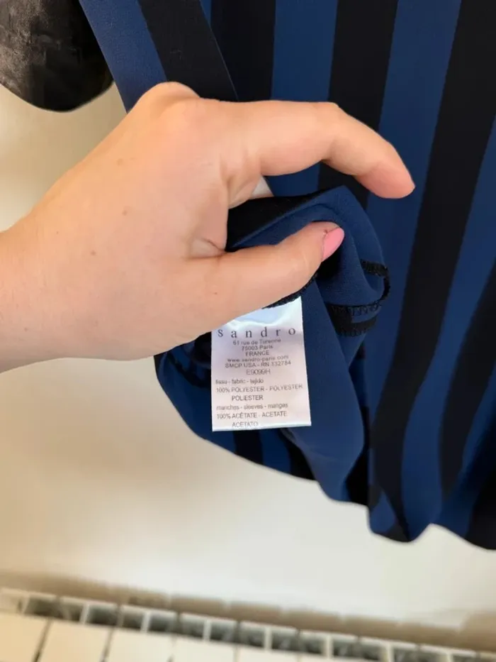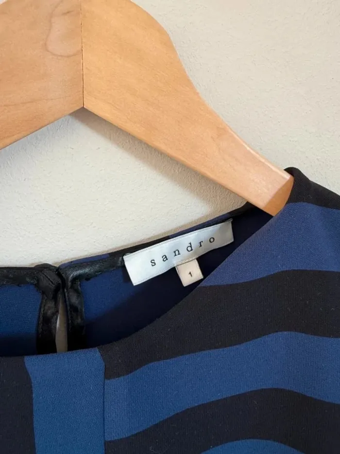 T-shirt Sandro à rayures bleu marine et noir Manches satinés noires avec détails fermetures taille 1 très bon état