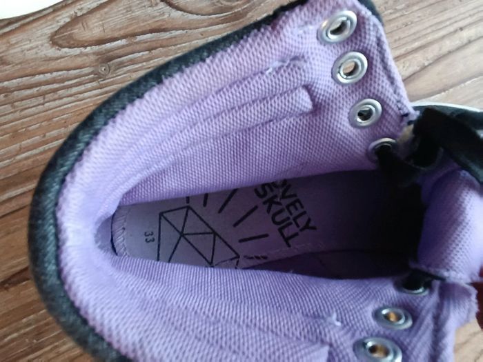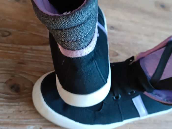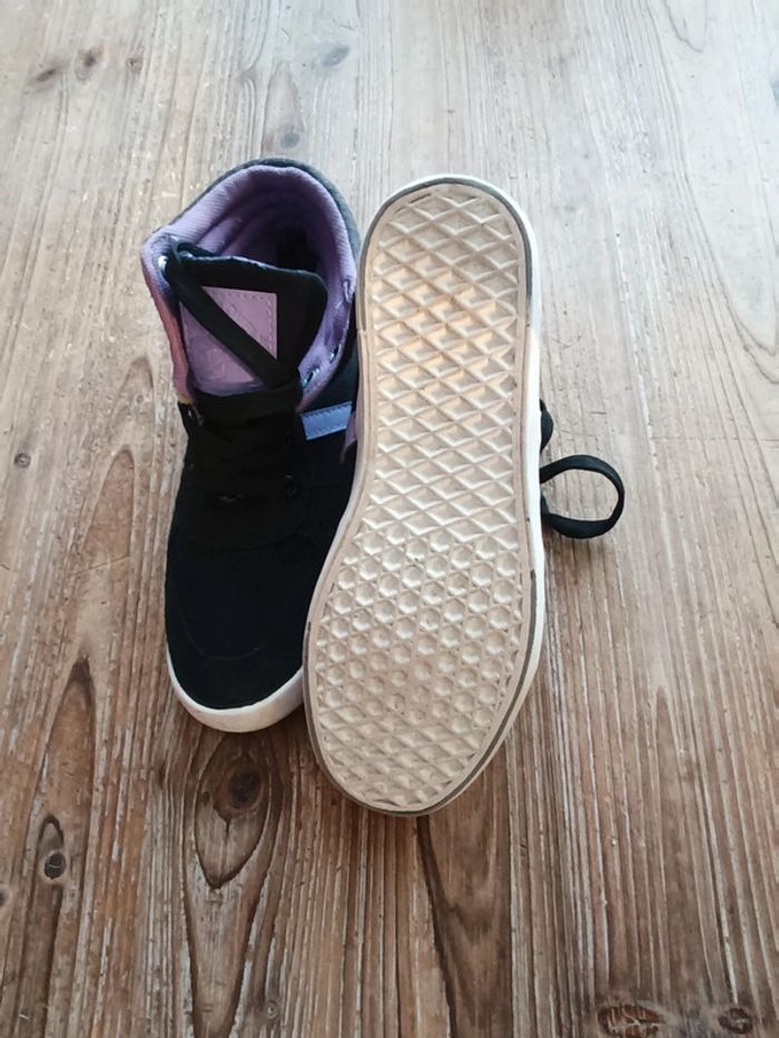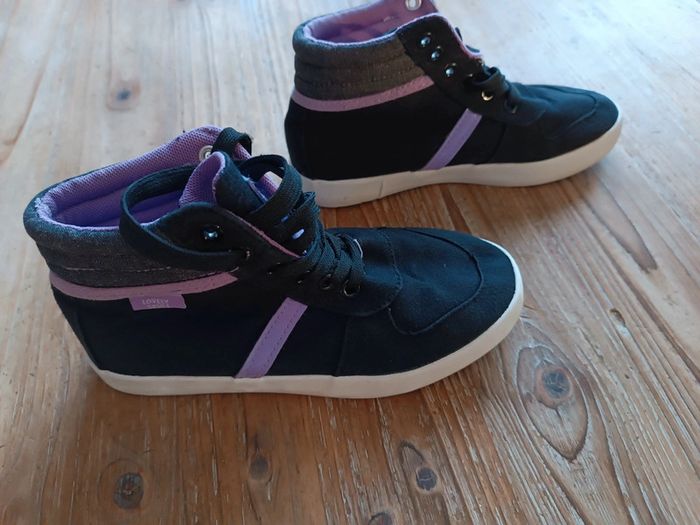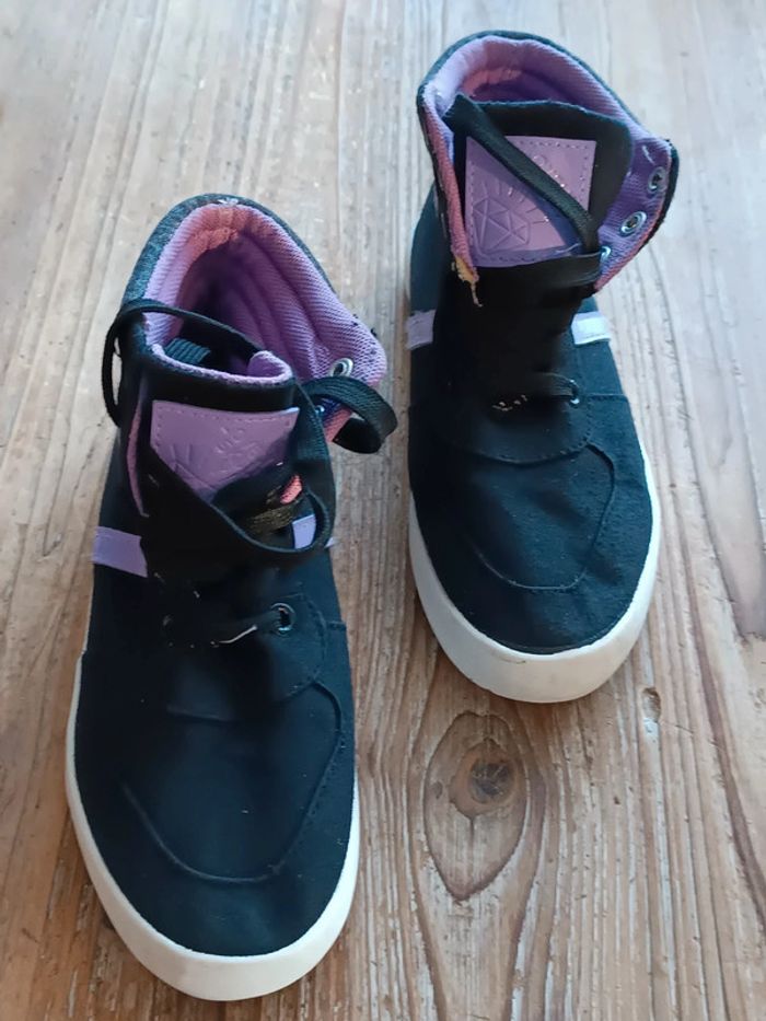Baskets montantes en toile Noir et violet Fermeture à lacets Petit accroc qui se voit très peu (voir dernière photo) #clo160967_Fille_P33