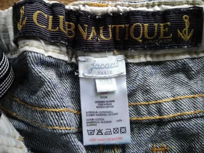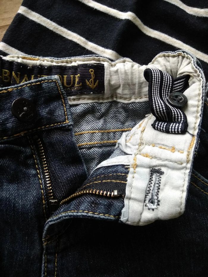 "Club Nautique" Polo rayé noir, blanc et fines lignes beige 100% Coton Pantalon en jeans Fermeture éclair et bouton Taille élastique réglable par bouton 100% Coton Taille 81 cm / 18 mois #clo160967_Garçon_18mois