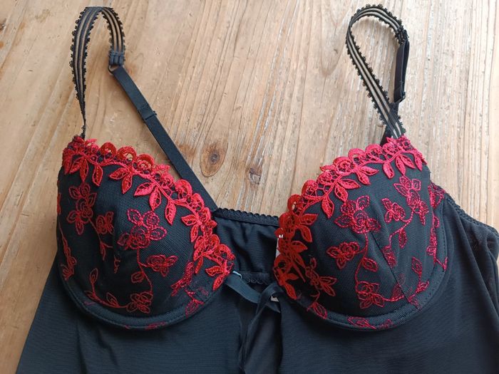 Noire et rouge Fermeture par ruban sur le devant Petites bretelles réglables Broderies rouges sur les bonnets 90A #clo160967_FemmeT36