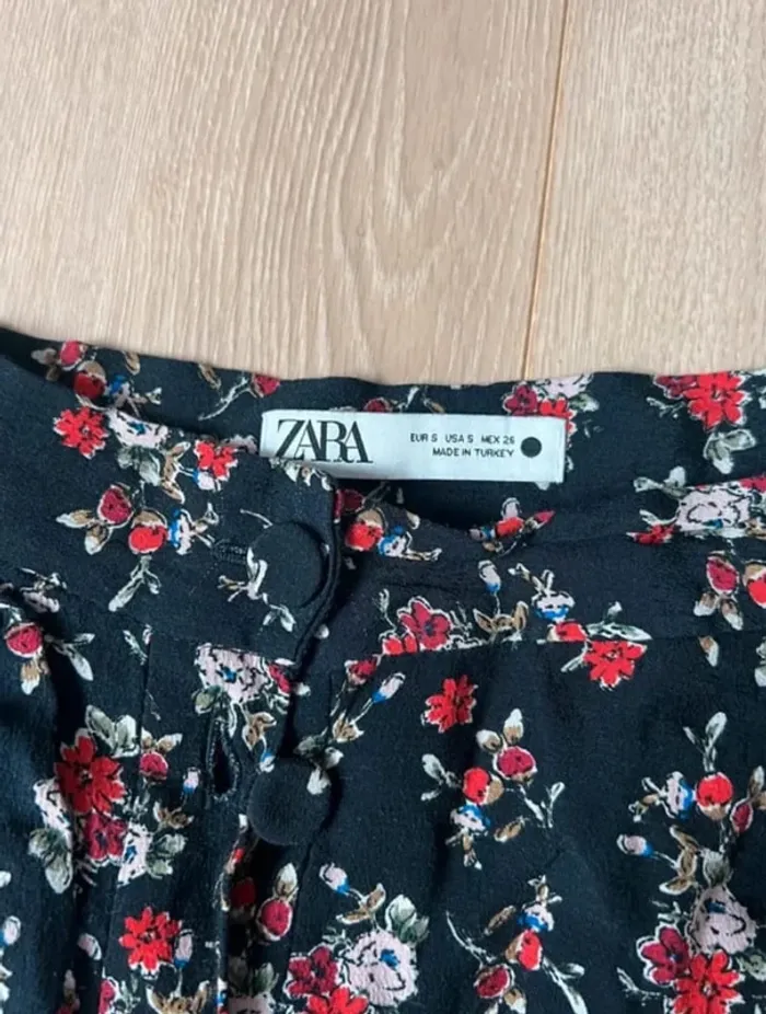 Jupe fleurie Zara noire à fleurs rouges à volants et boutons Taille S Très bon état