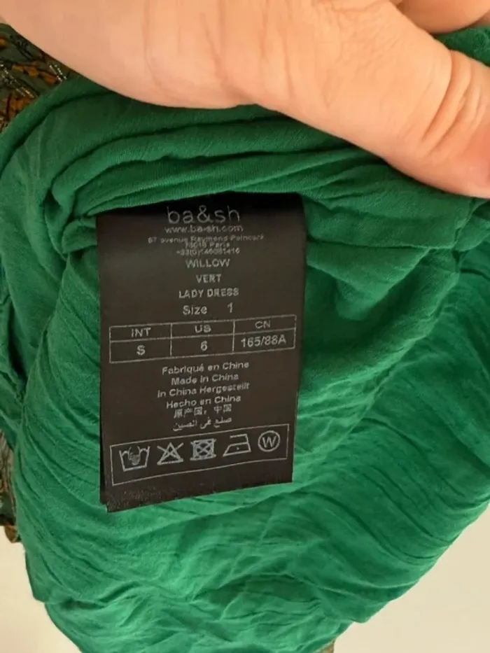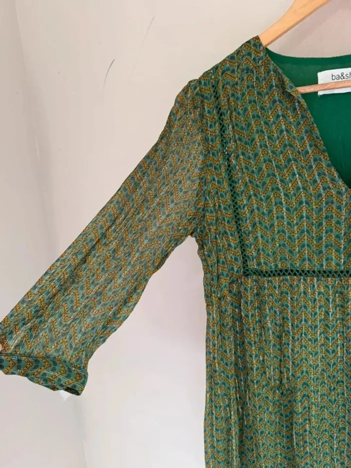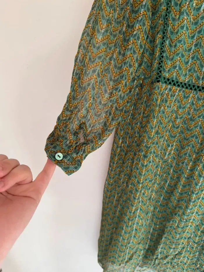 Robe courte verte à motifs dorés Taille 1 Très bon état