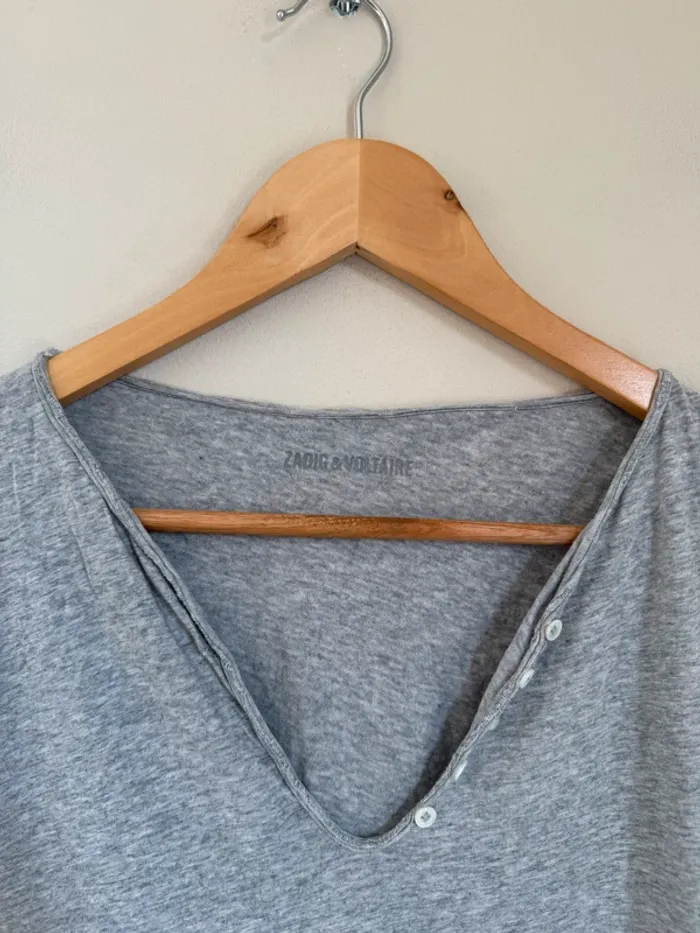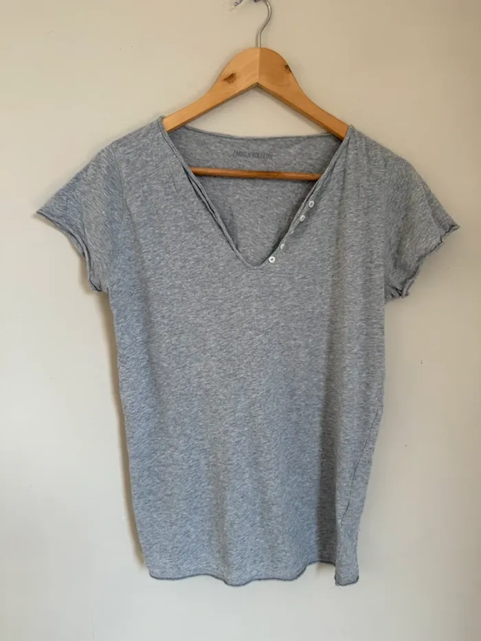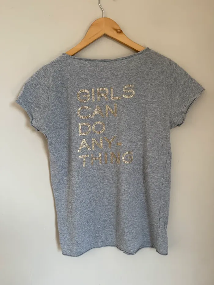 Tunisien Zadig&Voltaire gris Girls can do anything doré (qui s'effrite) taille S T-shirt en très bon état hormis les défauts sur l'écriture