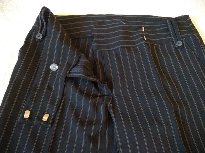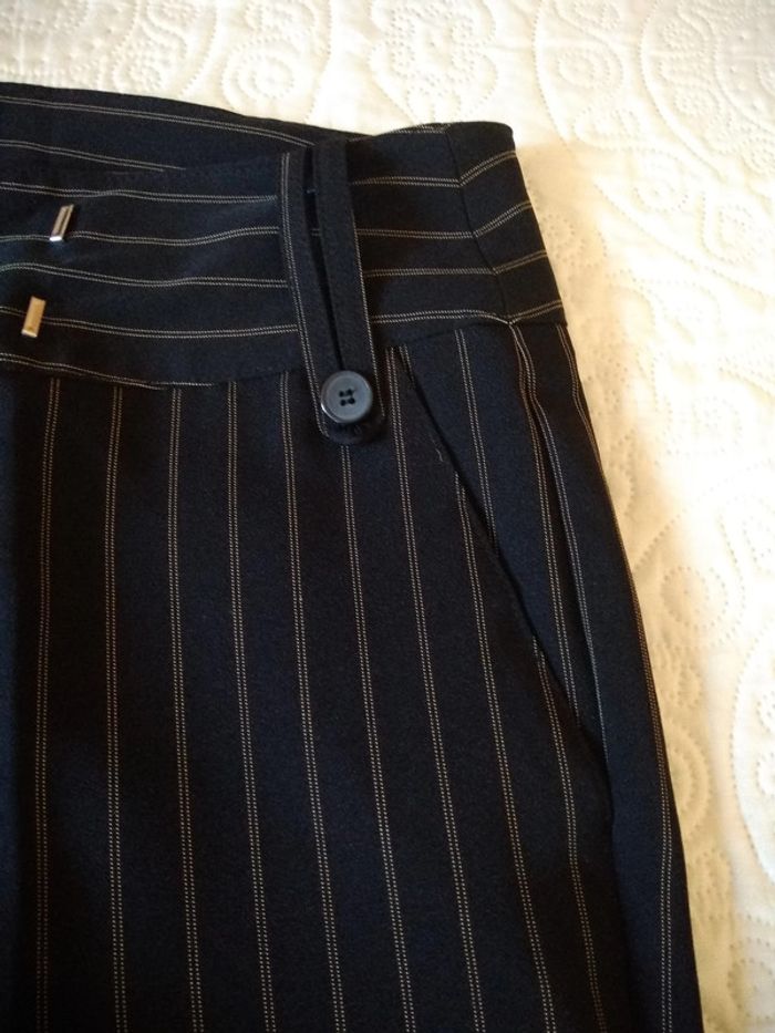 Fines doubles rayures jaunes moutarde Fermeture zippée et 2 crochets 2 poches plaquées que l'avant Passants larges à bouton Longueur à partir de l'entrejambe : 67 cm Longueur à partir de la taille : 92 cm Largeur de chaque bas des pattes: 28 cm 84% Polyester 5% Elasthanne 1% Viscose Taille correctement #clo160967_FemmeT42