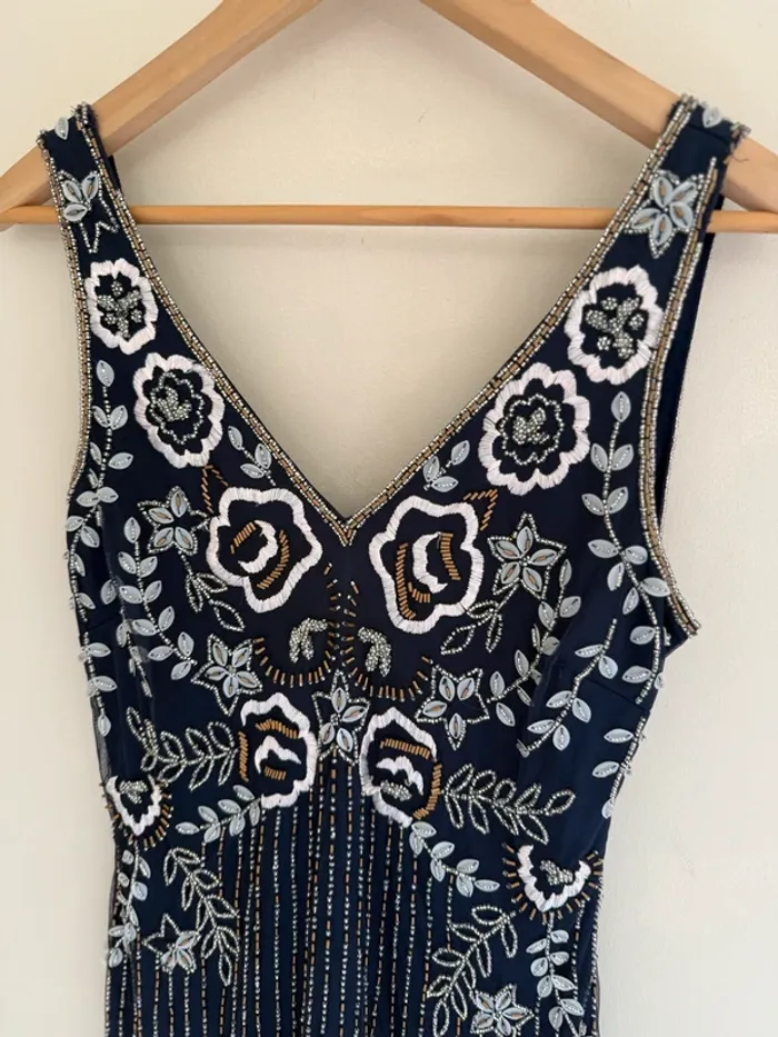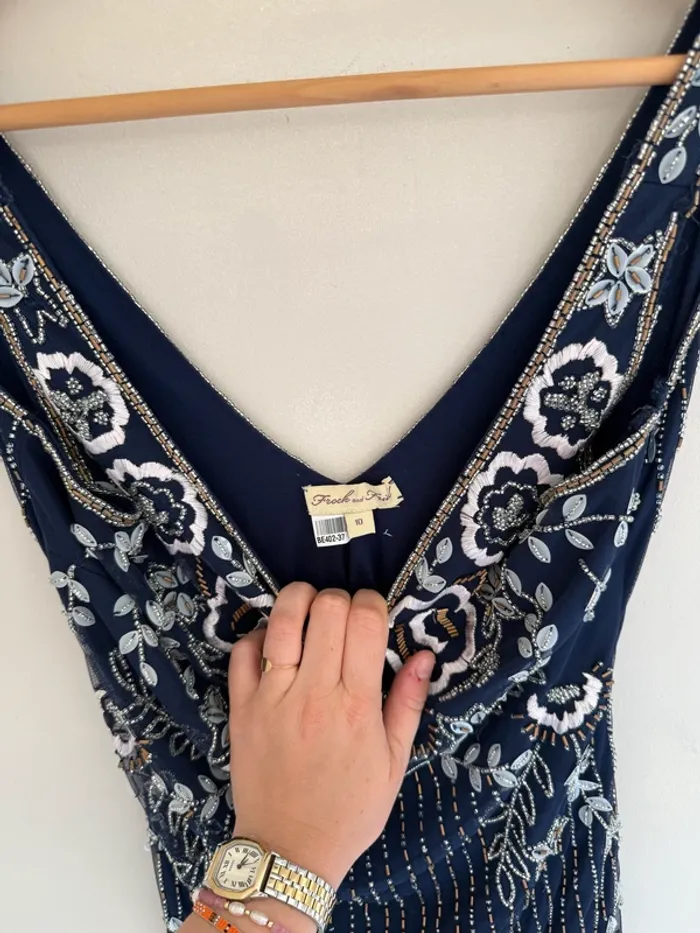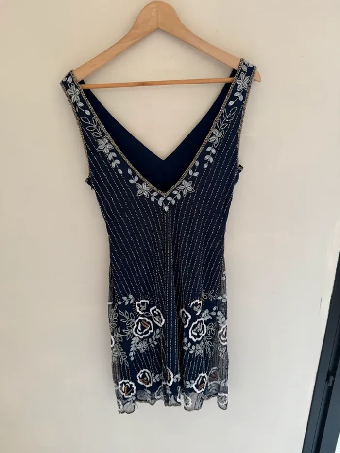 Robe courte Frock & Frill Magnifique travail de broderie en perles aux motifs fleuris et géométriques taille 10 UK = M Très bon état