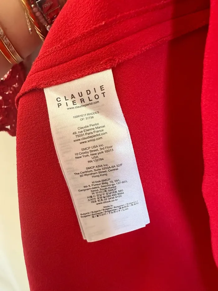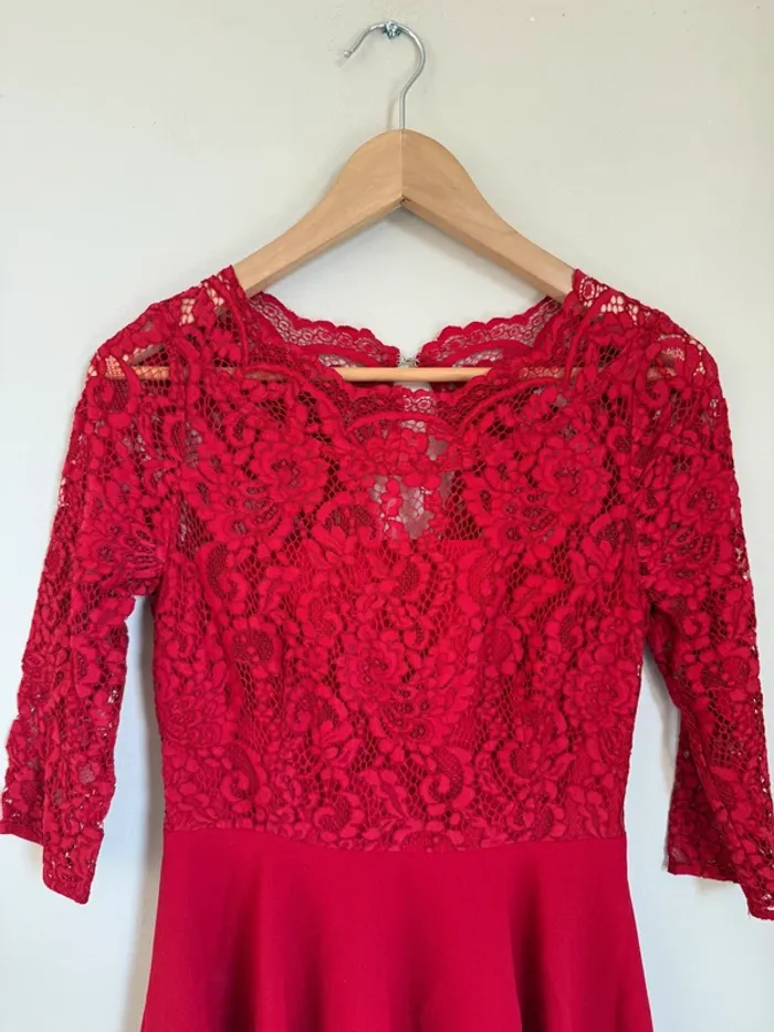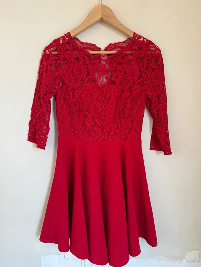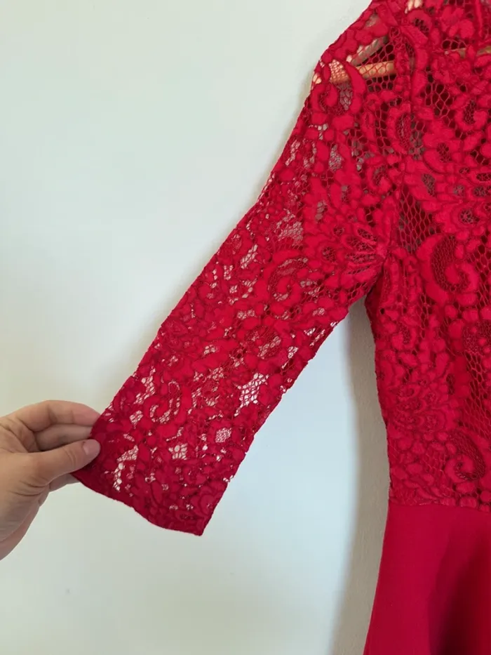 Robe patineuse rouge Claudie Pierlot Manches longues à dentelle Jupe plissée taille 38 Très bon état