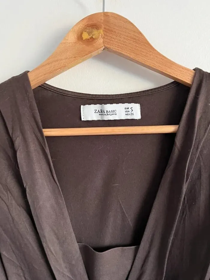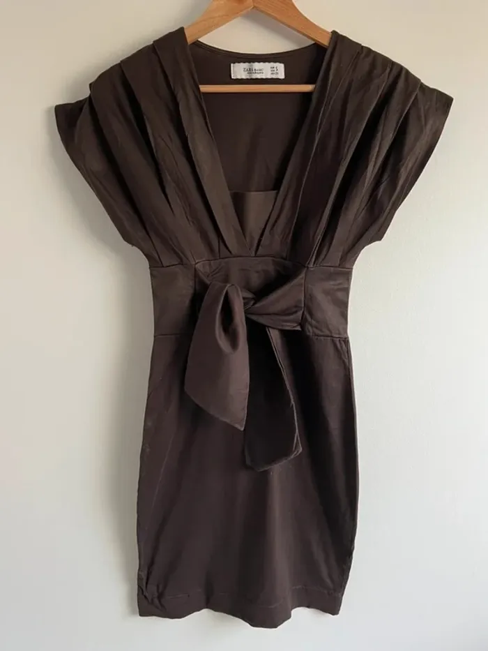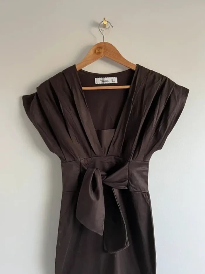 Robe Zara marron chocolat Haut effet plissé Noeud sur l'avant au niveau de la taille Taille S