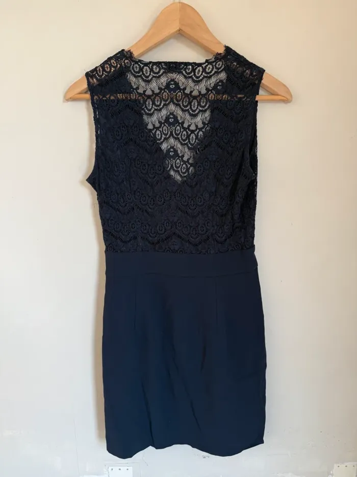 Robe Romina bleu marine Claudie Pierlot Buste en dentelle Décolleté en V Noeud à l'avant Taille 36 Longueur : 87cm