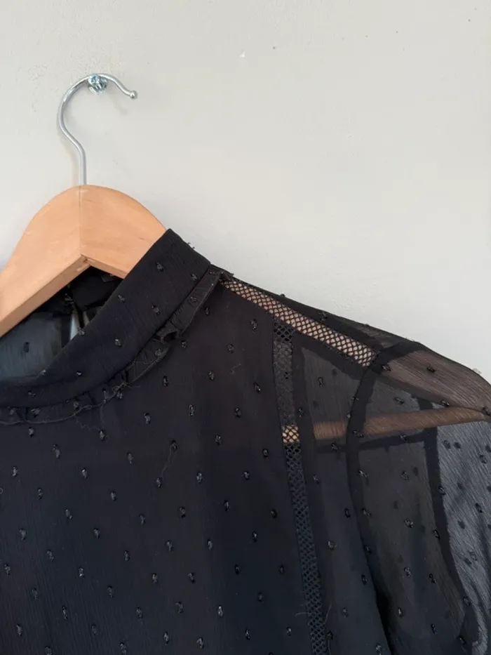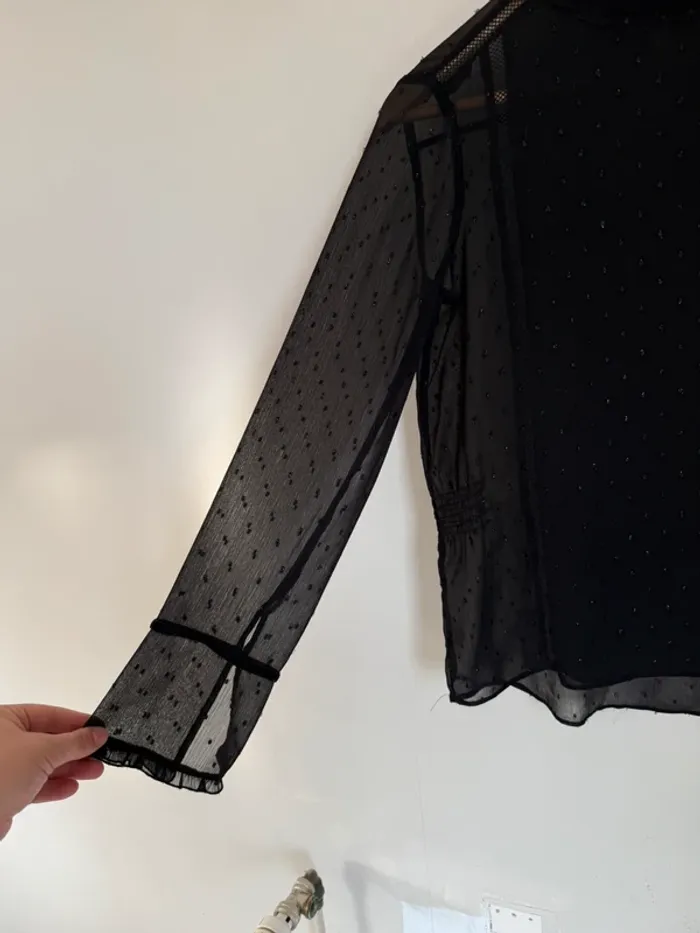 Blouse Zara noire transparente Plumetis brillants Taille XS