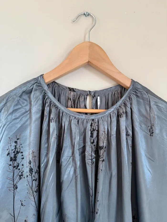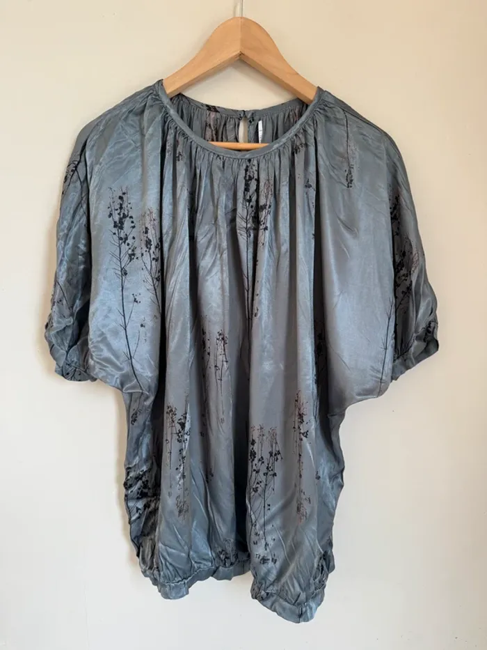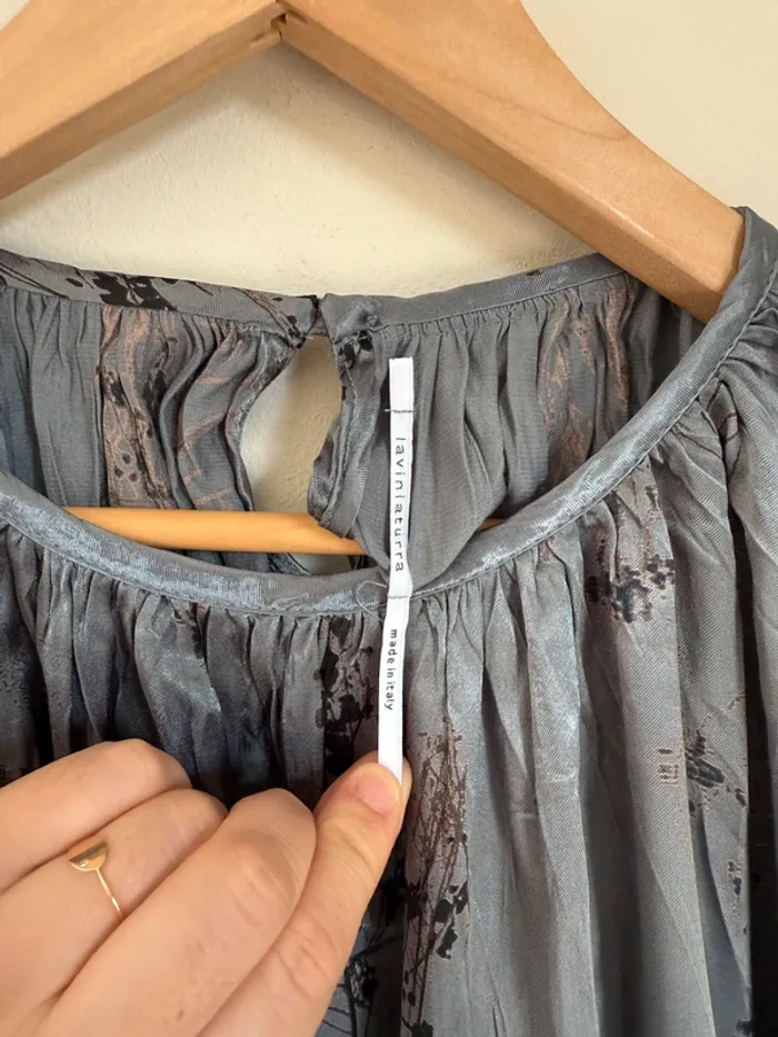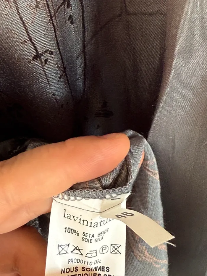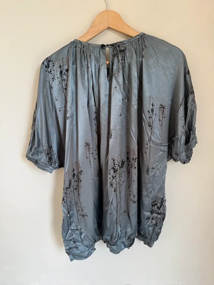 Blouse en soie Maison Lavinia turra Gris argenté avec petites fleurs noires Taille 46 IT = 42 FR 100% soie