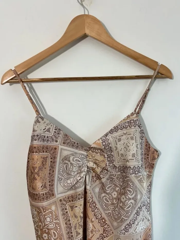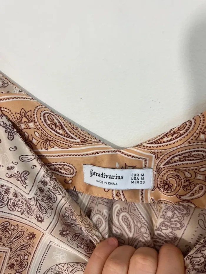 Robe satinée Stradivarius imprimée dans les tons orange / violet/ beige taille M