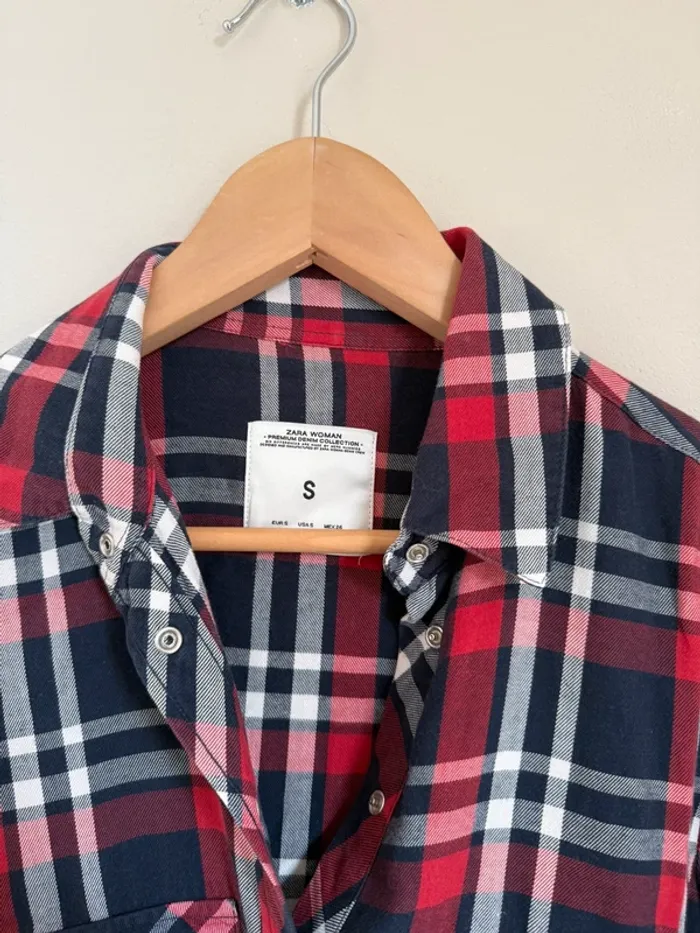 Chemise à carreaux Zara Bordeaux et bleu marine Taille S Très bon état
