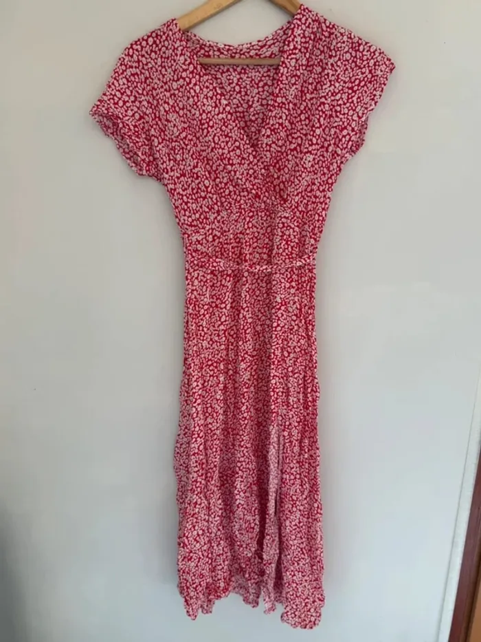 Robe longue rouge à fleurs Manches courtes Taille unique Très bon état