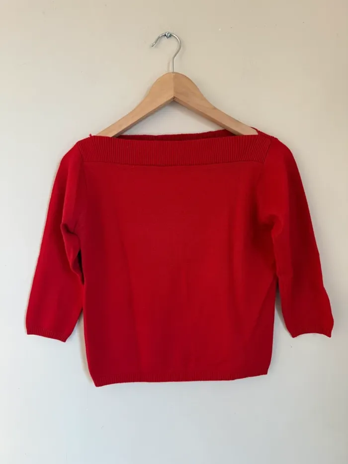 Pull rouge col Bardot épaules dénudées Camaïeu Taille S Très bon état