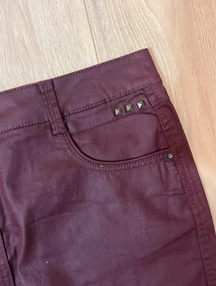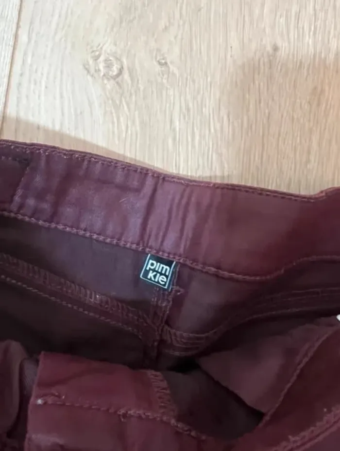 Jupe courte bordeaux Pimkie effet toile ciré taille S/M étiquette coupée Largeur à la taille : 39cm Longueur totale : 34cm très bon état