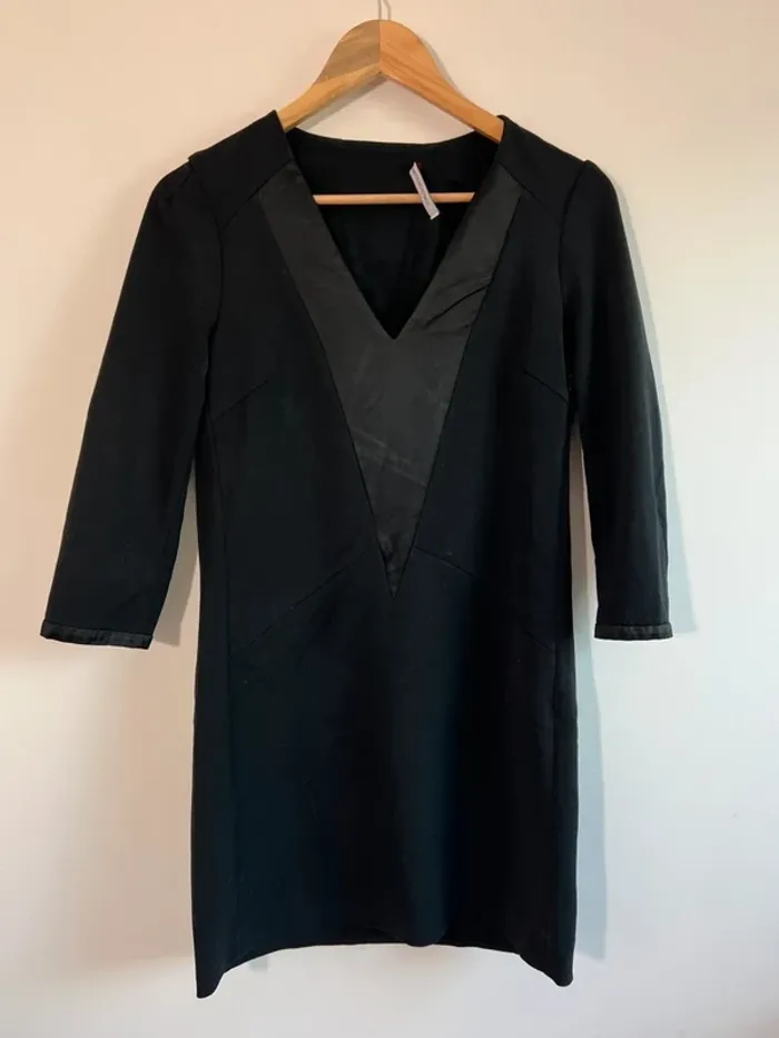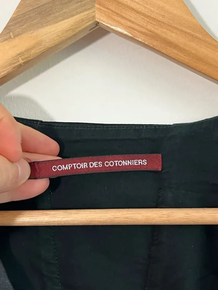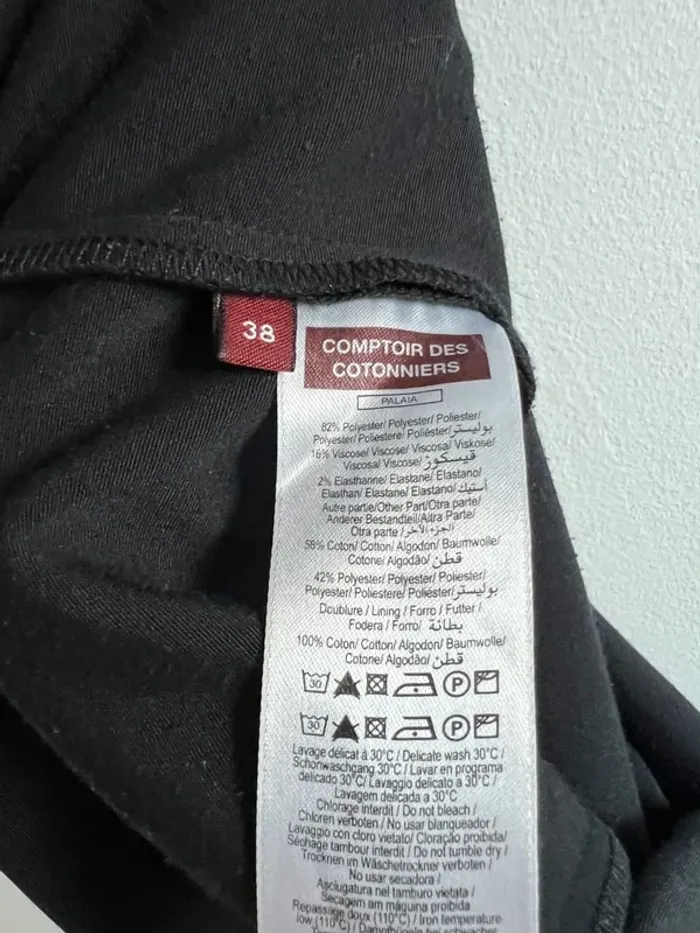 Robe noire Comptoir des cotonniers Décolleté en V et bout de manche satiné Manches longues Taille 38