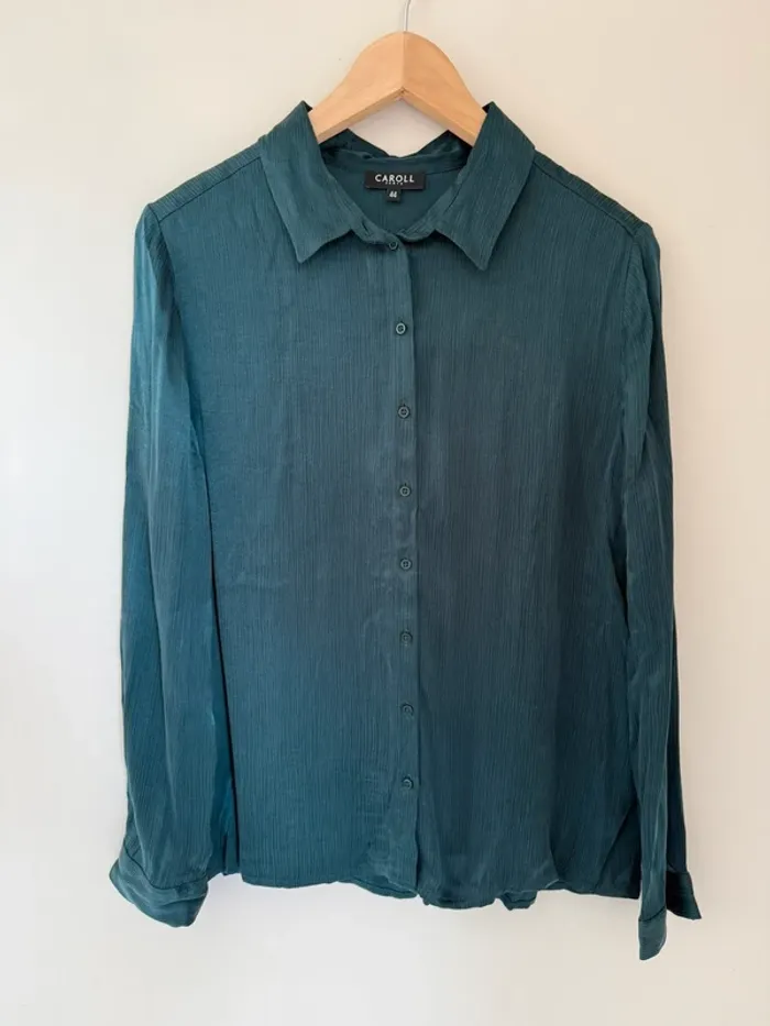 Chemise plissée Caroll Bleu / vert Taille 44 Très bon état