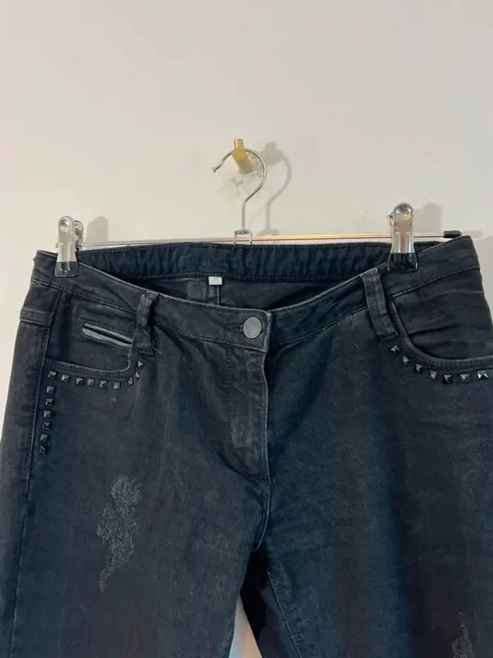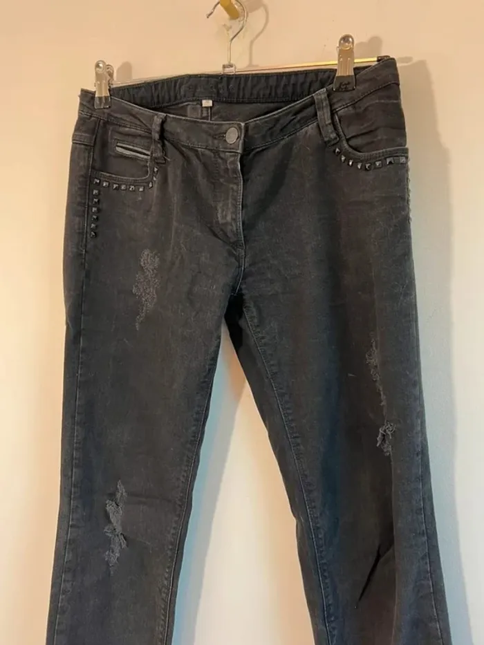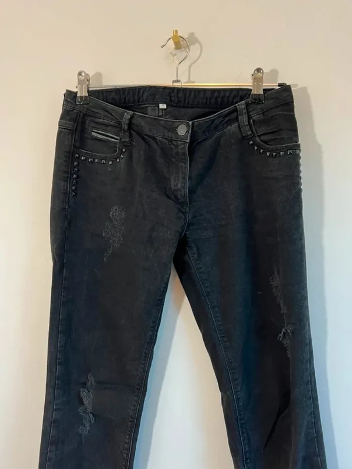 Jean skinny noir Sandro Clous au niveau des poches Effet destroy Très bon état Taille 38