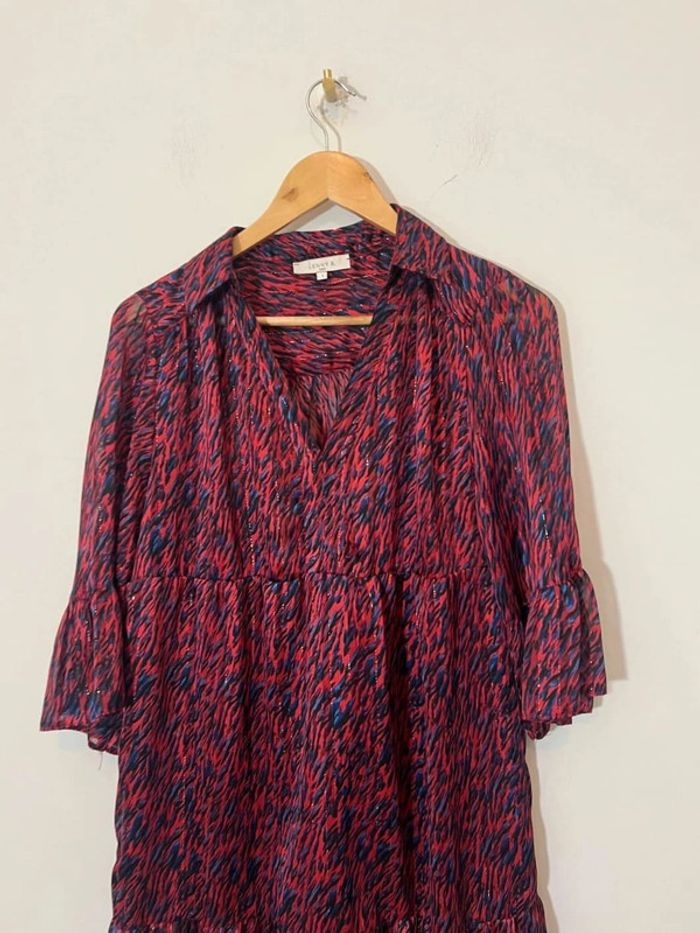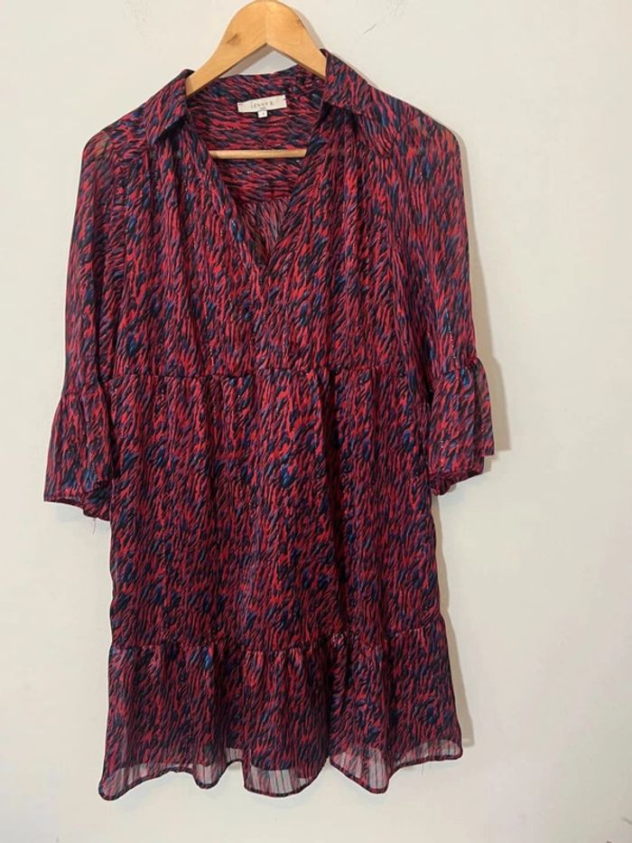 Robe Lenny B Bordeaux imprimé bleu marine et noir style tigre Taille 1 Doublure Très bon état