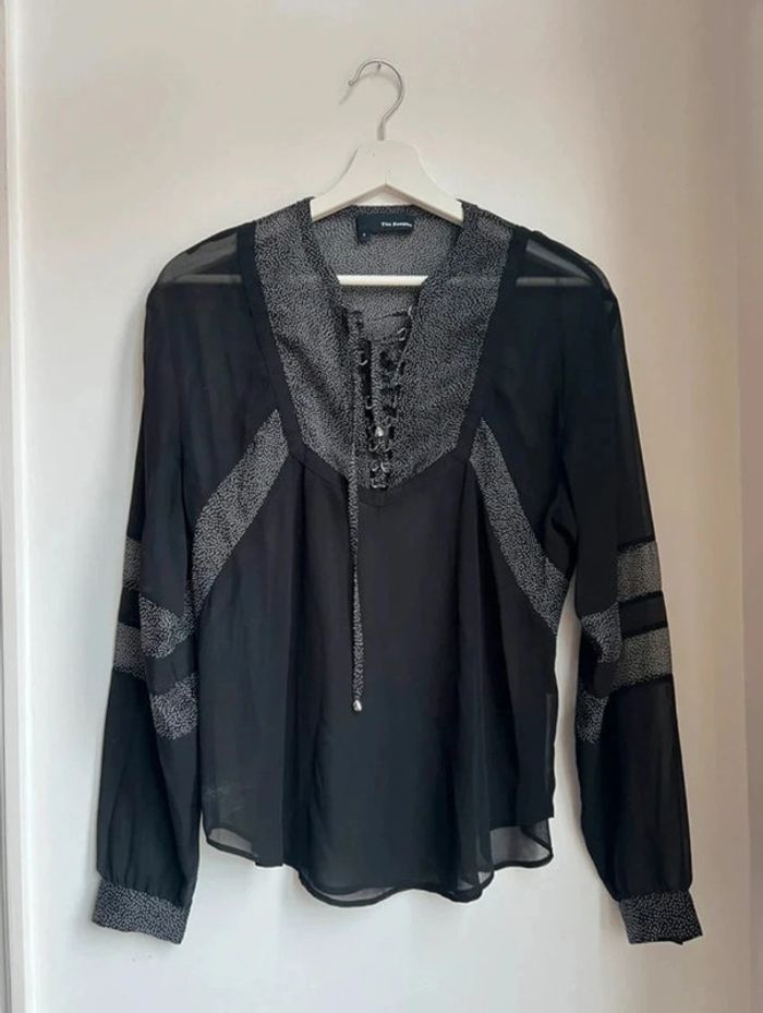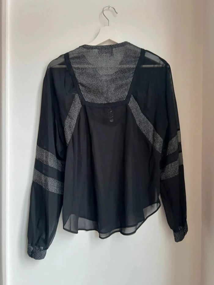 Blouse The Kooples noir à pois blancs et gris Transparente Taille S Très bon état