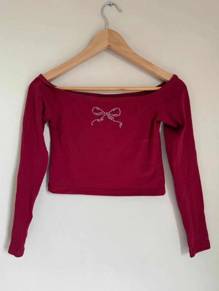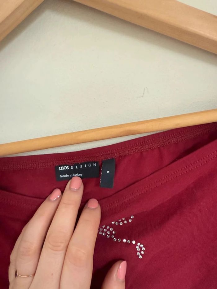 T-shirt court bordeaux Asos noeud en strass taille S bon état, quelques traces