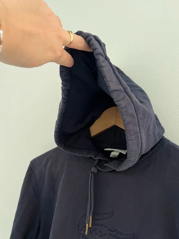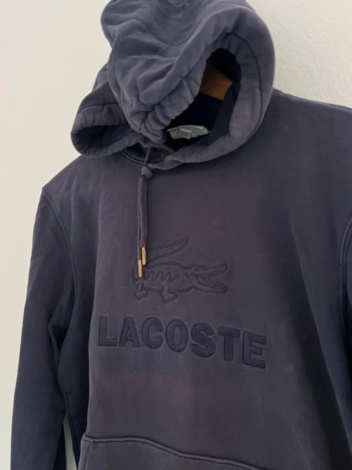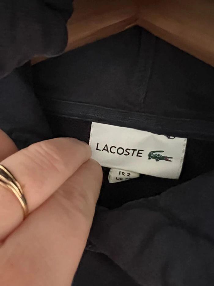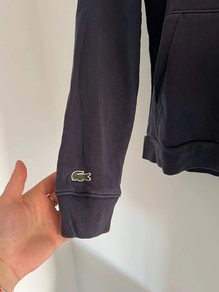 Pull à capuche bleu marine Lacoste Bon état : quelques traces de délavage mais pas de défauts Taille XS