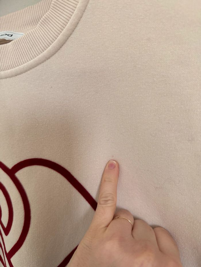 Sweat Promod rose pâle étiquette coupée : taille S/M oversize Logo Promod en feutrine bordeaux très bon état une micro tâche