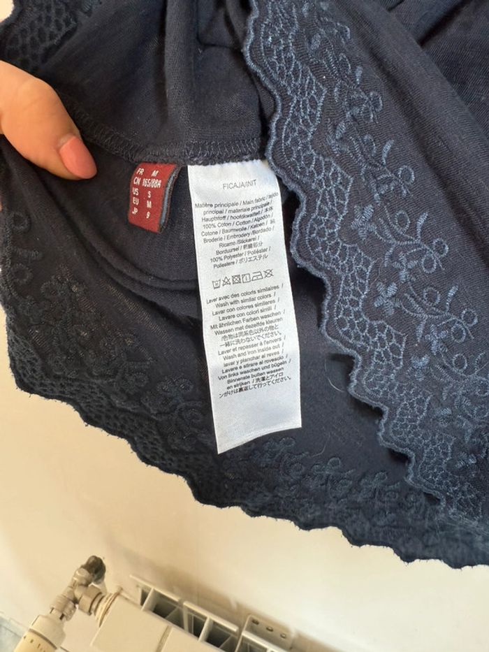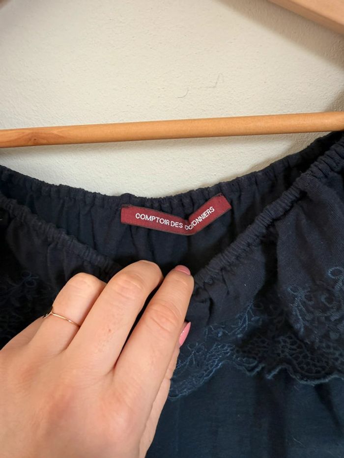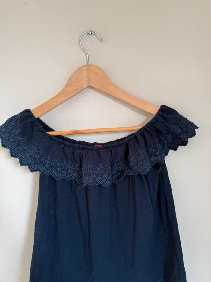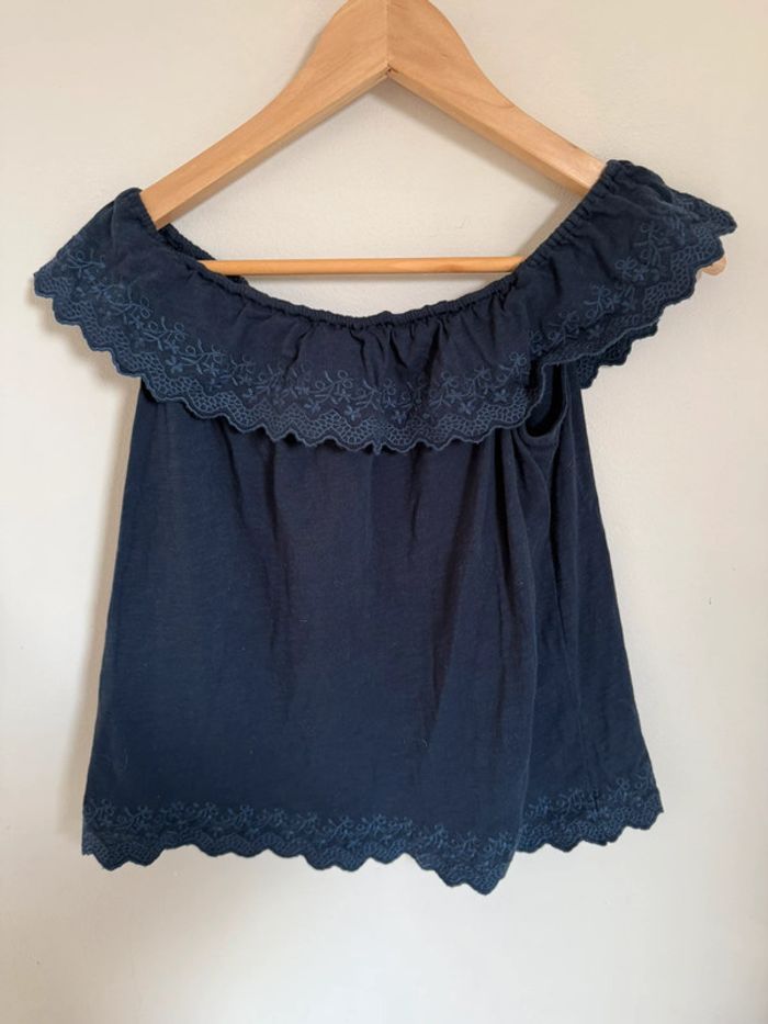 Débardeur comptoir des cotonniers épaules dénudées coupe bardot Bleu marine Broderie en bas et sur le col Taille M