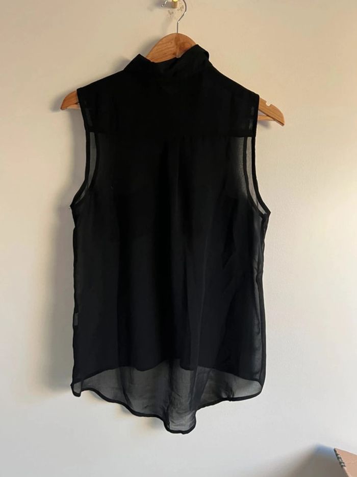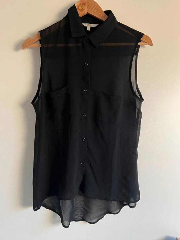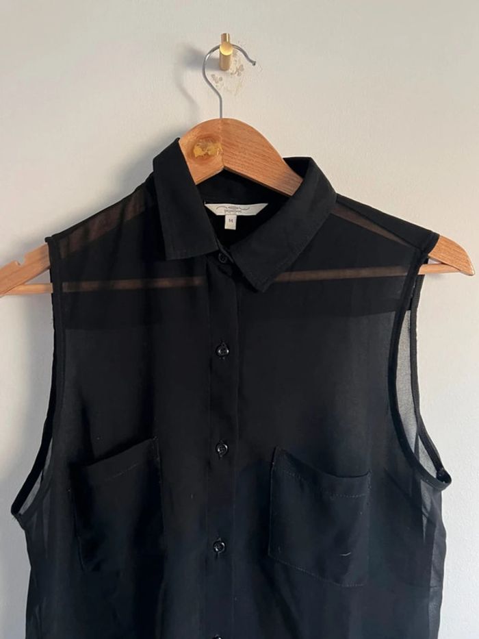 Chemisier noir sans manches New Look Fluide et léger Poches carrées Plus long dans le dos Taille 14 UK Très bon état