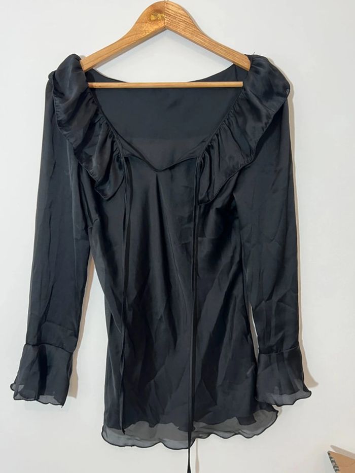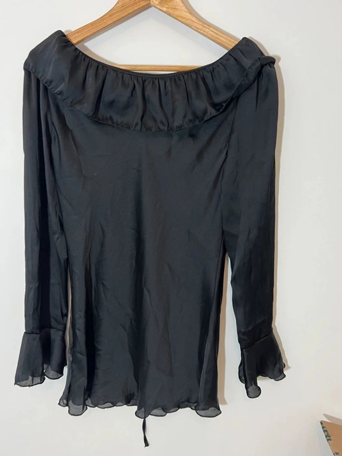 Robe noire décolleté volants et manches Taille S (étiquette coupée) Longueur : 75cm Neuve jamais portée