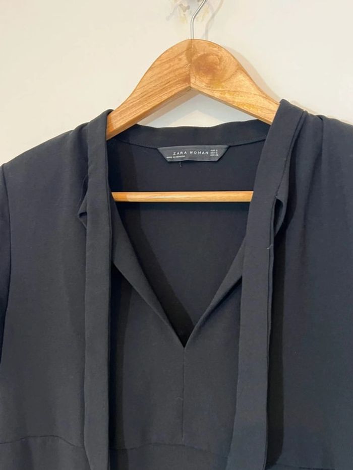 Petite robe noire Zara Manches courtes avec coussins épaulettes Décolleté en V Taille S Très bon état