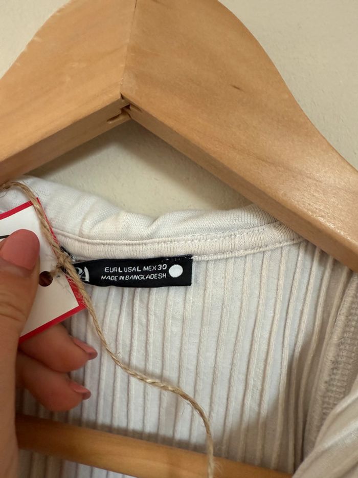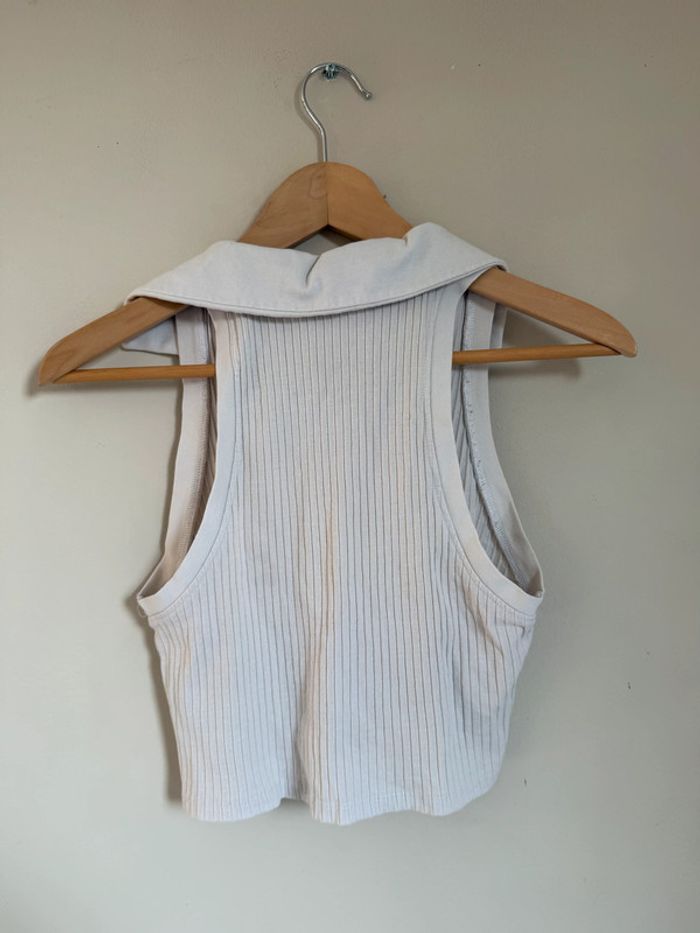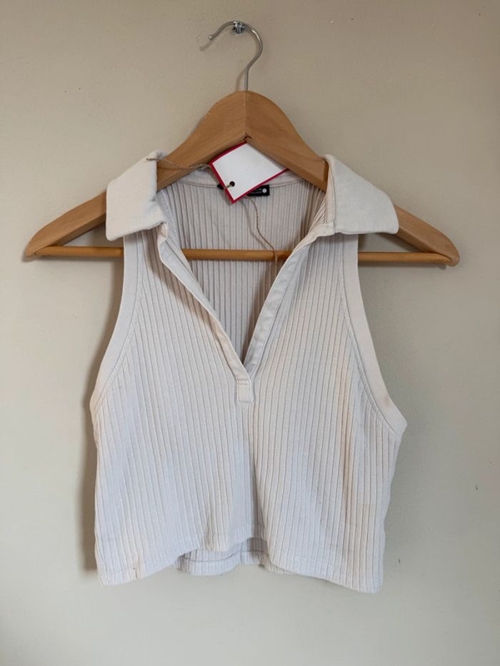 Crop top blanc côtelé Zara Col chemise Taille L Une petite tâche