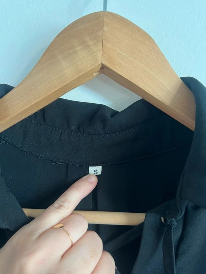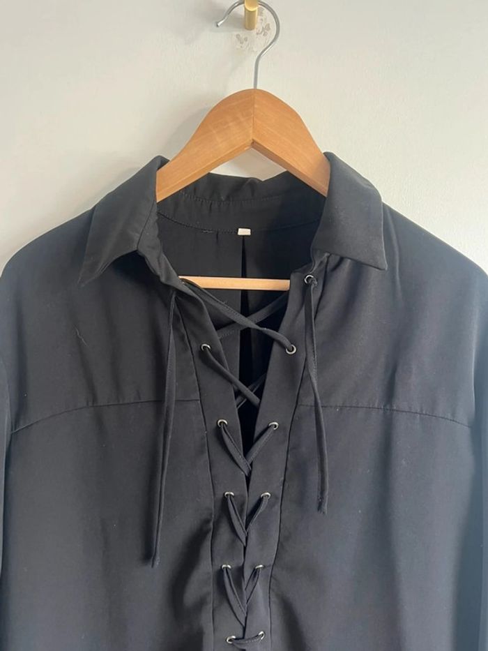 Blouse chemise noire infroissable Lacet croisé sur le décolleté Taille S très large ok M Marque inconnue Excellent état